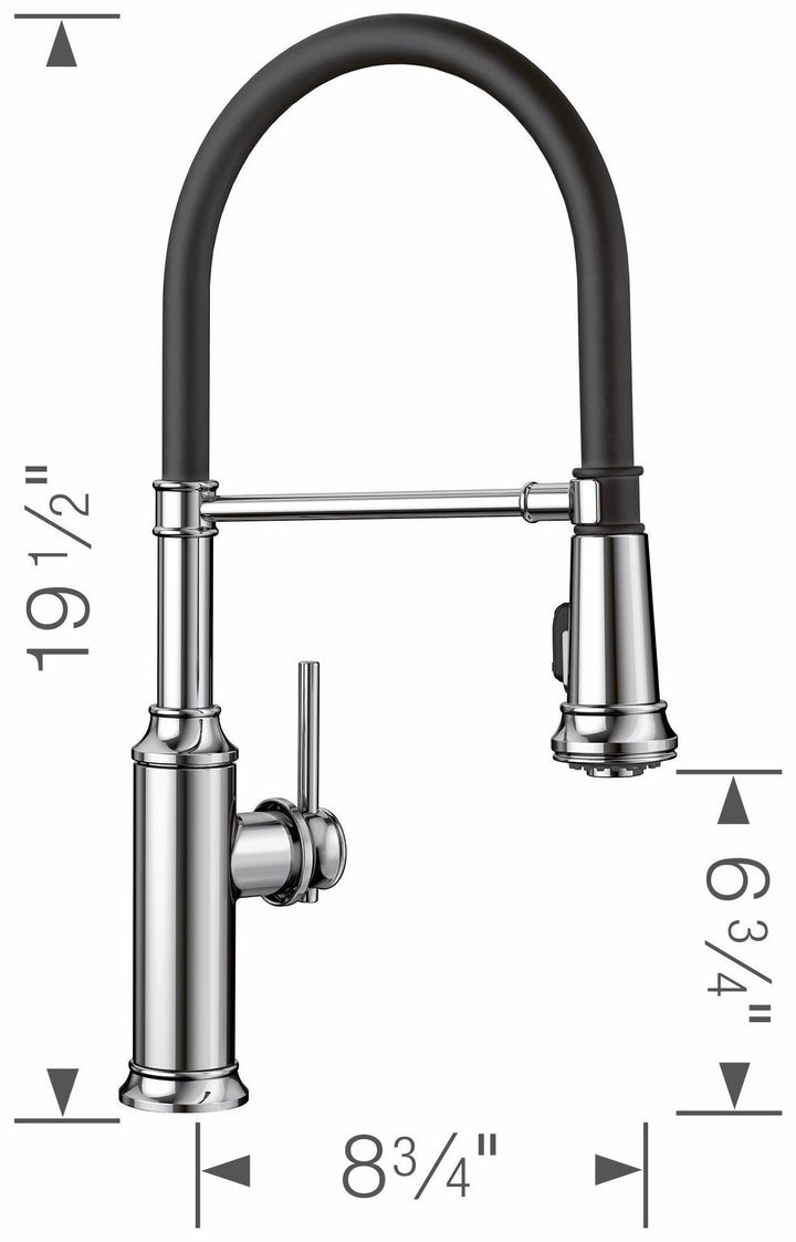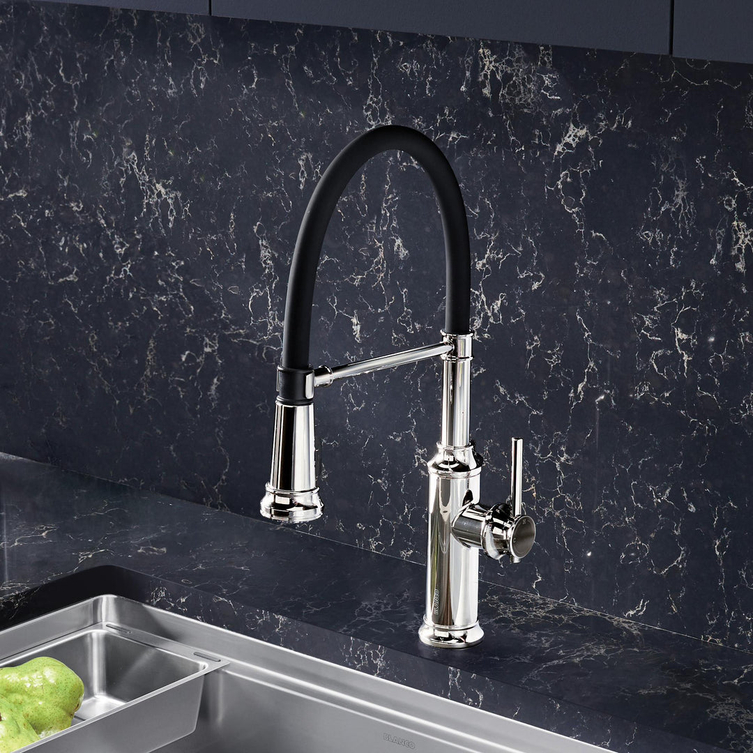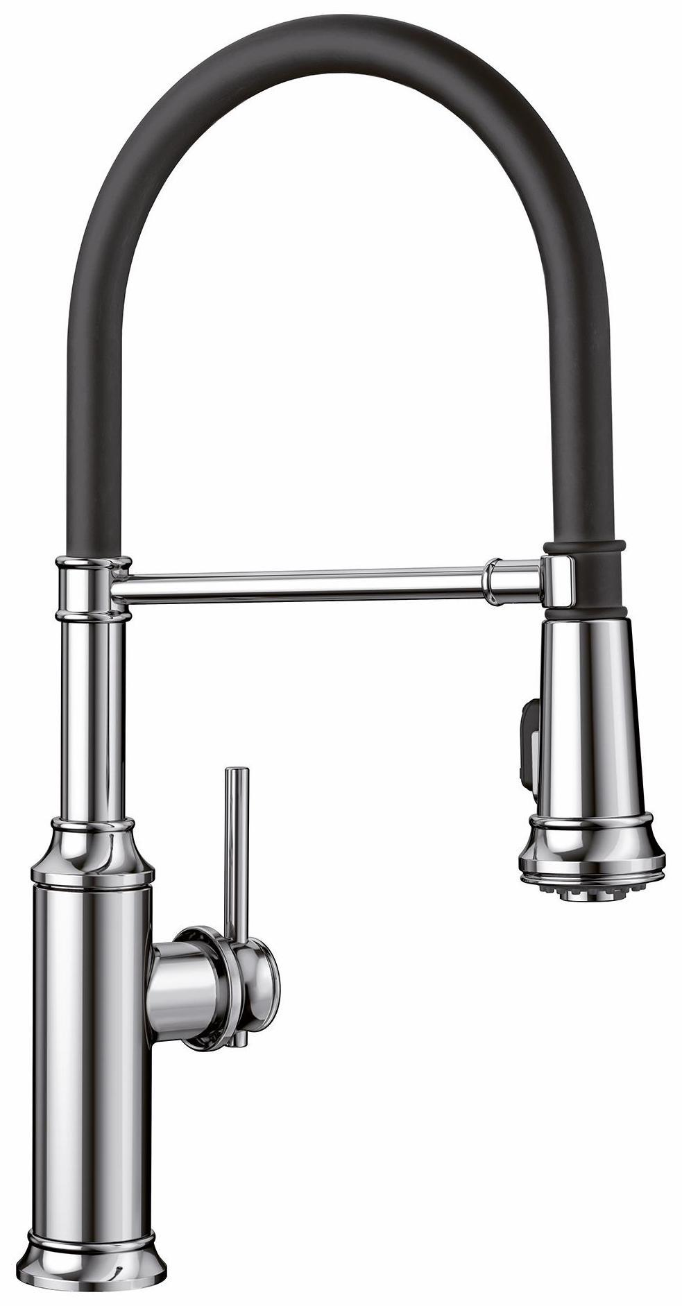 Empressa Semi-Pro Kitchen Faucet with Rubber Hose Pulldown Spray - Chrome 442508 Blanco