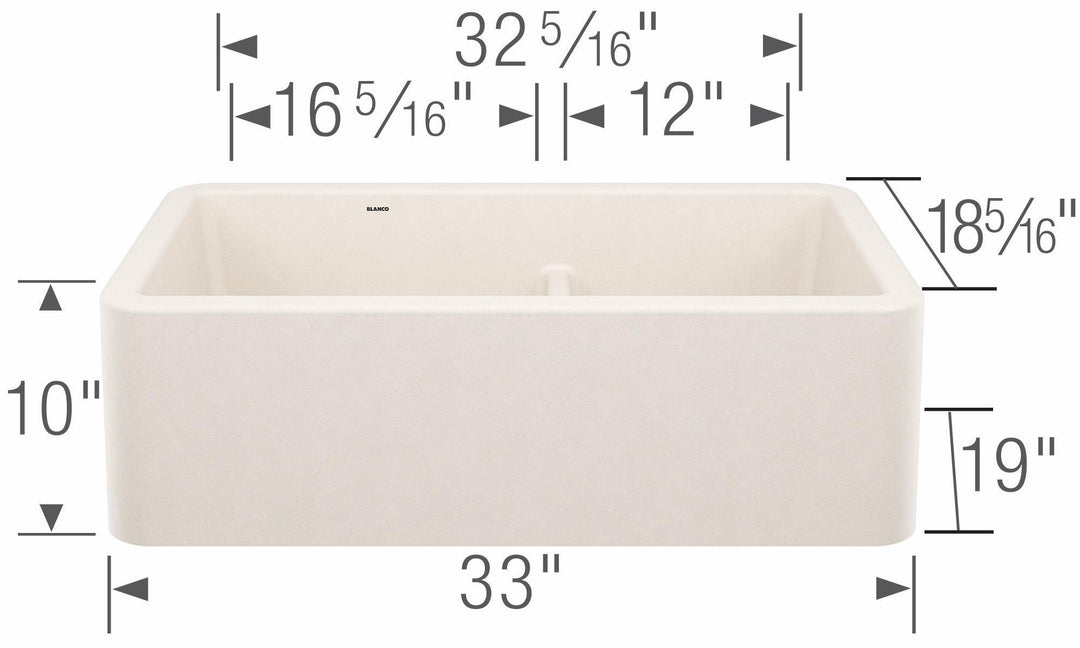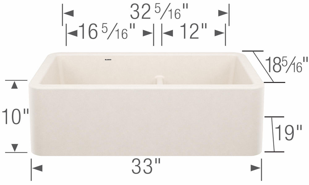 Ikon 33 1.75 Bowl Low Divide Apron Front Silgranit Sink - Soft White 402873 Blanco
