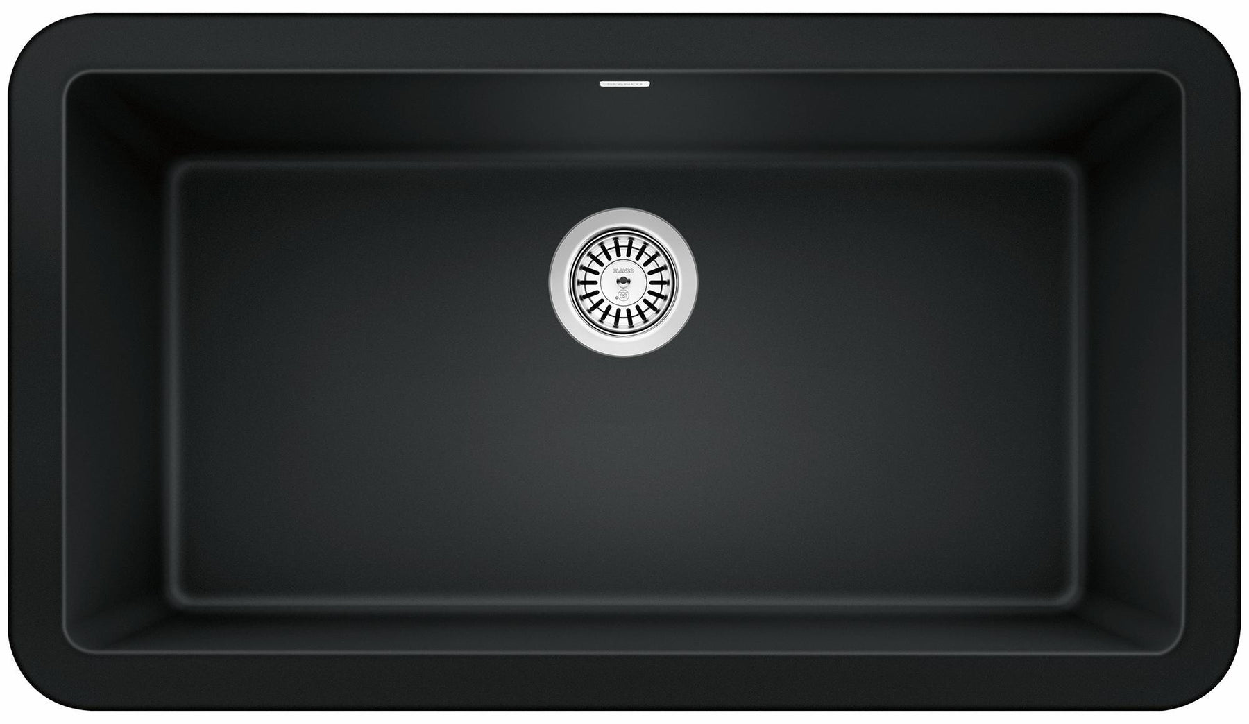 Ikon 33 1 Bowl Silgranit Undermount Apron Front Kitchen Sink - Coal Black 402644 Blanco