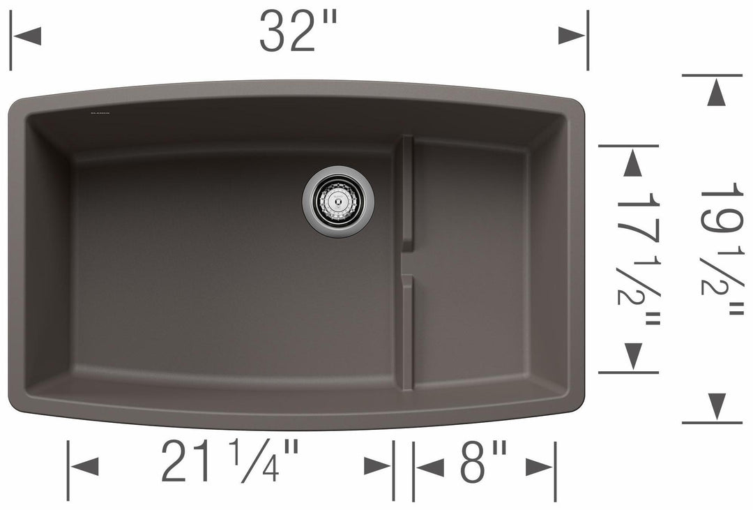 Performa Cascade 1.5 Bowl Undermount Silgranit Sink - Volcano Gray 402930 Blanco