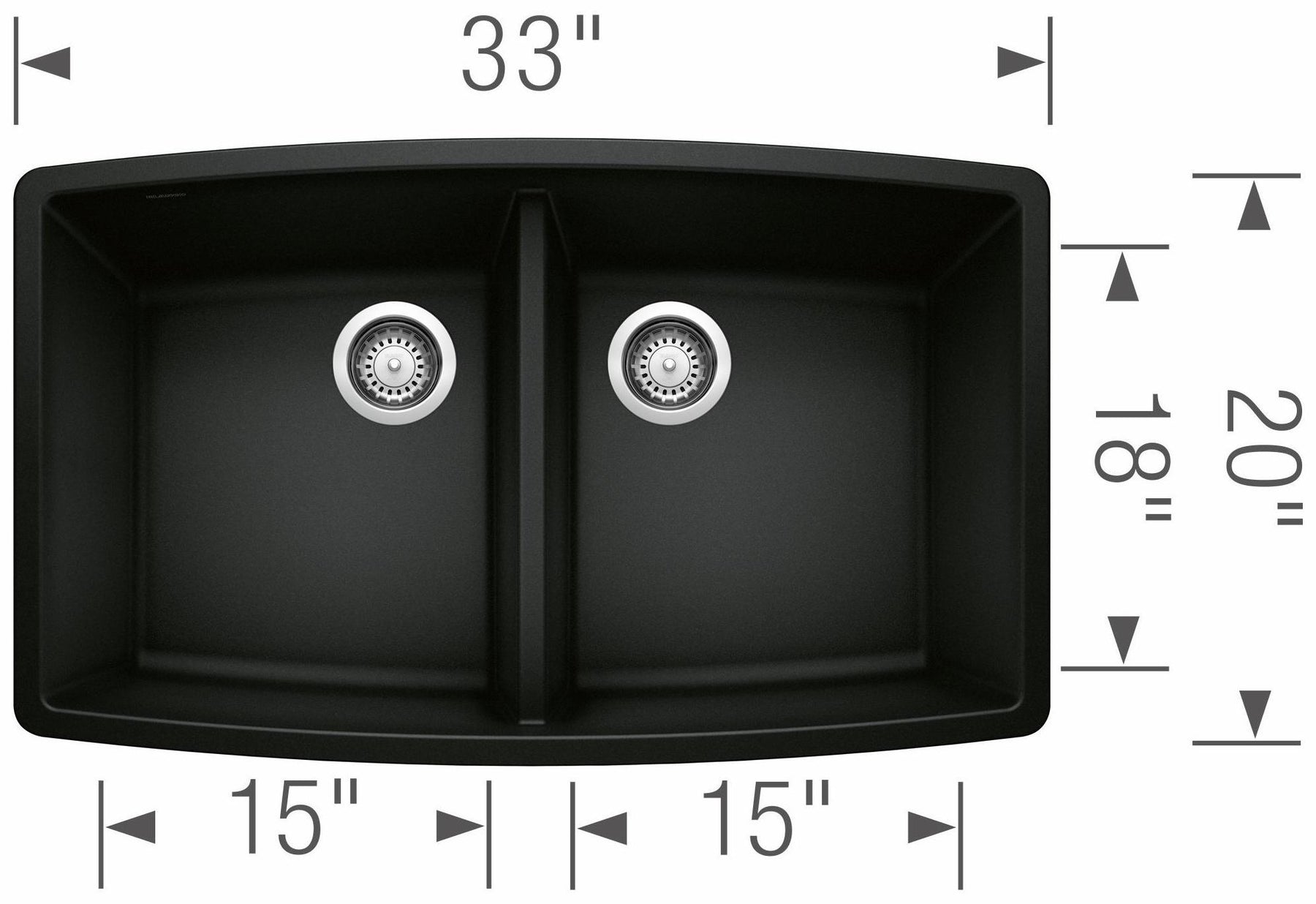Performa U 2 Bowl Undermount Silgranit Sink - Coal Black 402662 Blanco