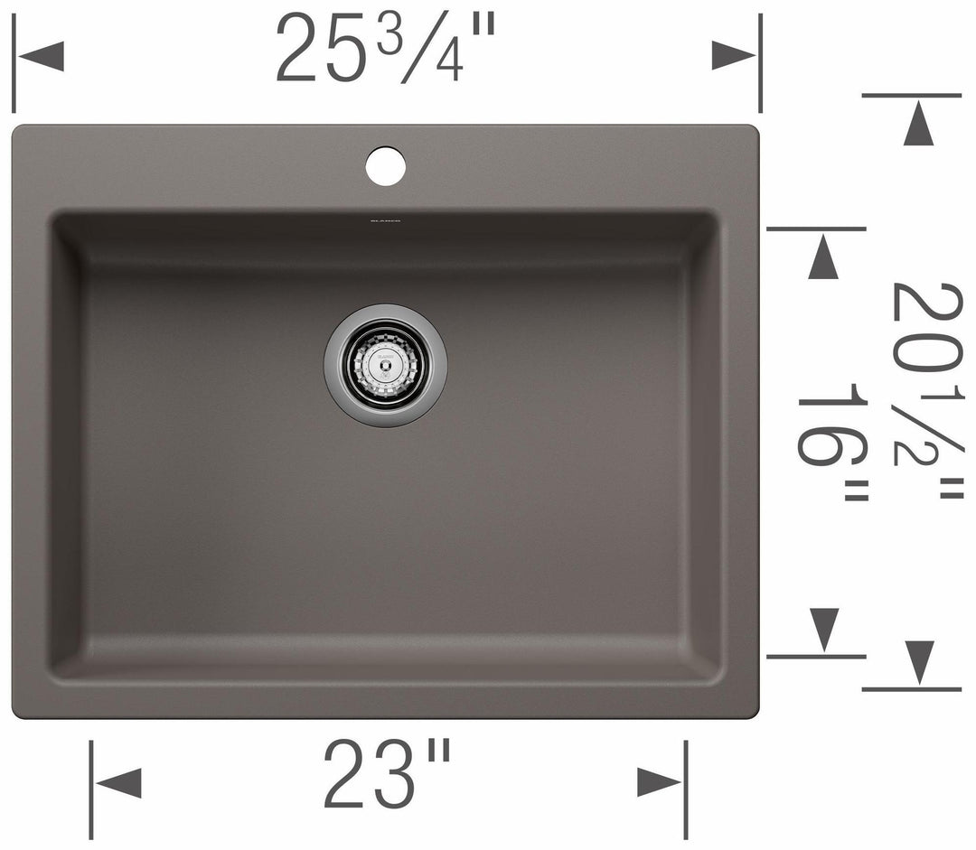 Precis 1 Bowl Dual Mount Silgranit Kitchen Sink ADA/CSA - Volcano Gray 402924 Blanco