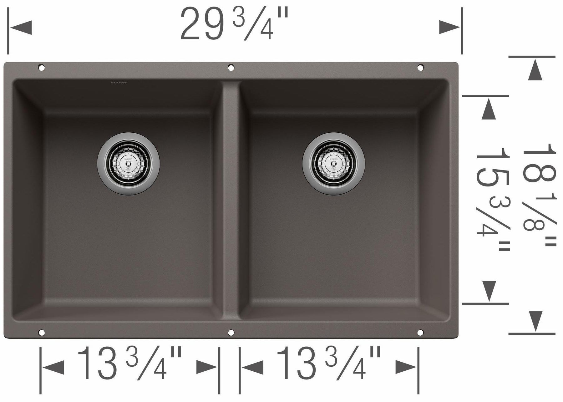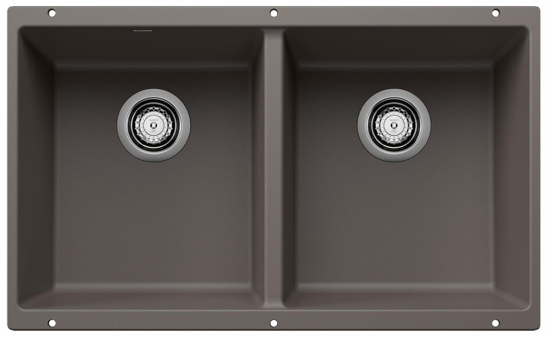 Precis 2 Bowl Undermount Silgranit Kitchen Sink - Volcano Gray 402922 Blanco