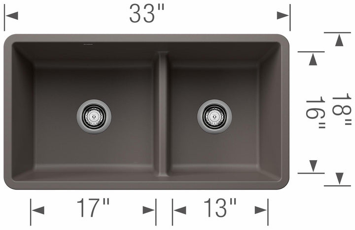 Precis U 1.75 Bowl Undermount Silgranit Sink - Volcano Gray 402921 Blanco