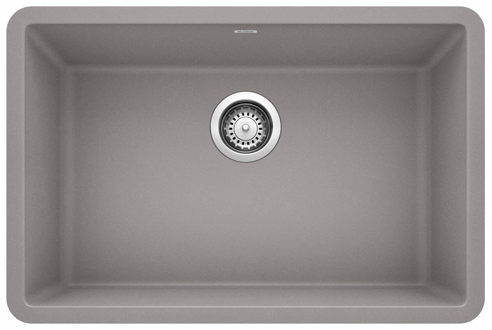 ThePRECIS 27” SINGLE BOWL UNDERMOUNT KITCHEN SINKoffers clean lines and a simple but spacious single bowl design. Made of SILGRANIT®, PRECIS kitchen sinks are engineered to withstand heavy cookware and hot bakeware. Silgranit sinks are not only strong but also beautiful, available in a range of nature-inspired colours that effortlessly complement the latest kitchen trends. Combine the PRECIS sink with a BLANCO faucet and accessories to create a BLANCO UNIT; a seamlessly integrated kitchen solution designed to transform kitchen chores into joyful experiences. Everything you need to drink, prep and clean, all in one place.