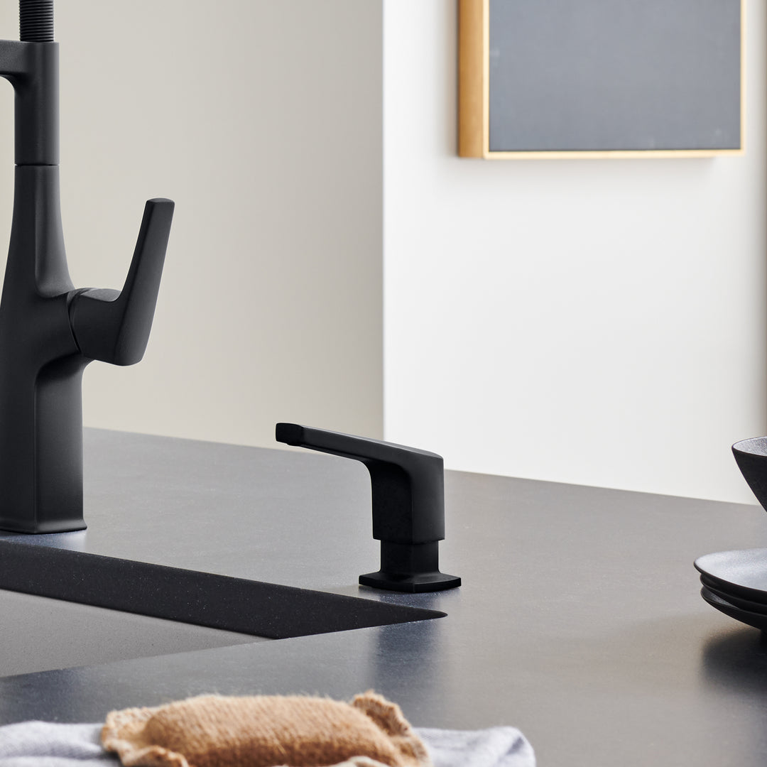 Complete the look of your sink area by adding a matching soap dispenser. Featuring European styling and modern lines, the new RIVANA collection offers powerful performance and ease-of-use for the home chef. Made of solid brass construction for long-lasting use, and easy to refill with the liquid soap of your choosing, this stunning soap dispenser perfectly complements our RIVANA Faucet Collection.
