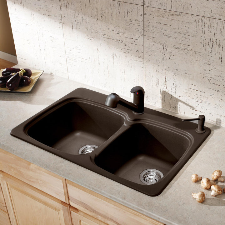 The VIENNA 210 kitchen sink features smooth curves, rounded edges and a dual mount installation. Made of SILGRANIT®, BLANCO kitchen sinks are engineered to withstand heavy cookware and hot bakeware. Silgranit sinks are not only strong but also beautiful, available in a range of nature-inspired colors that effortlessly complement the latest kitchen trends. Combine the VIENNA sink with a BLANCO faucet and accessories to create a BLANCO UNIT; a seamlessly-integrated kitchen solution designed to transform kitchen chores into joyful experiences. Everything you need to drink, prep and clean, all in one place.