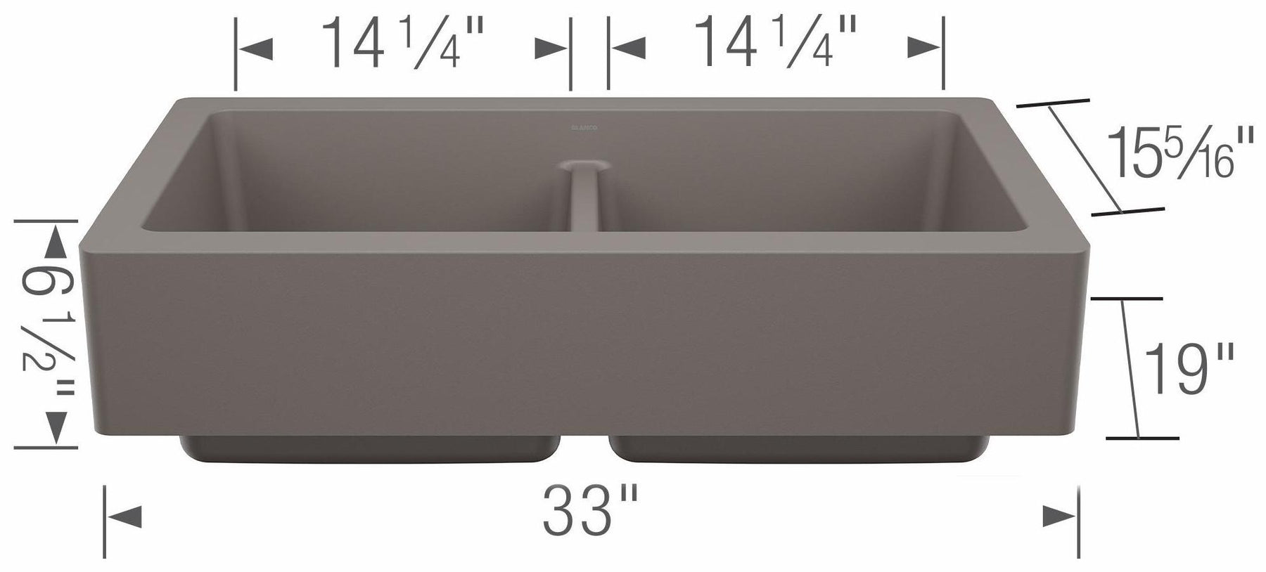 Vintera 33 2 Bowl Apron Front Silgranit Sink - Volcano Gray 402944 Blanco