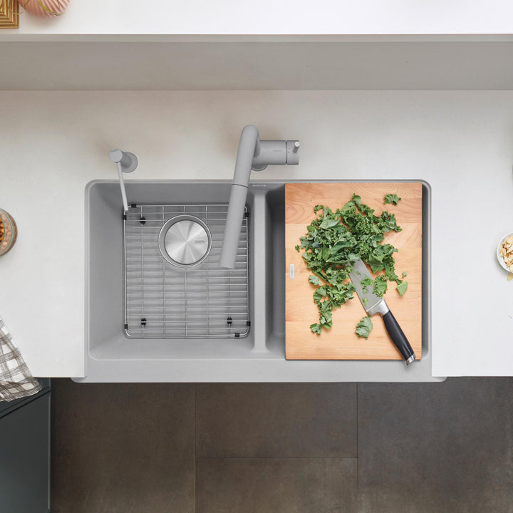 Vintera 33 2 Bowl Apron Front Sink - Concrete Gray 402598 Blanco