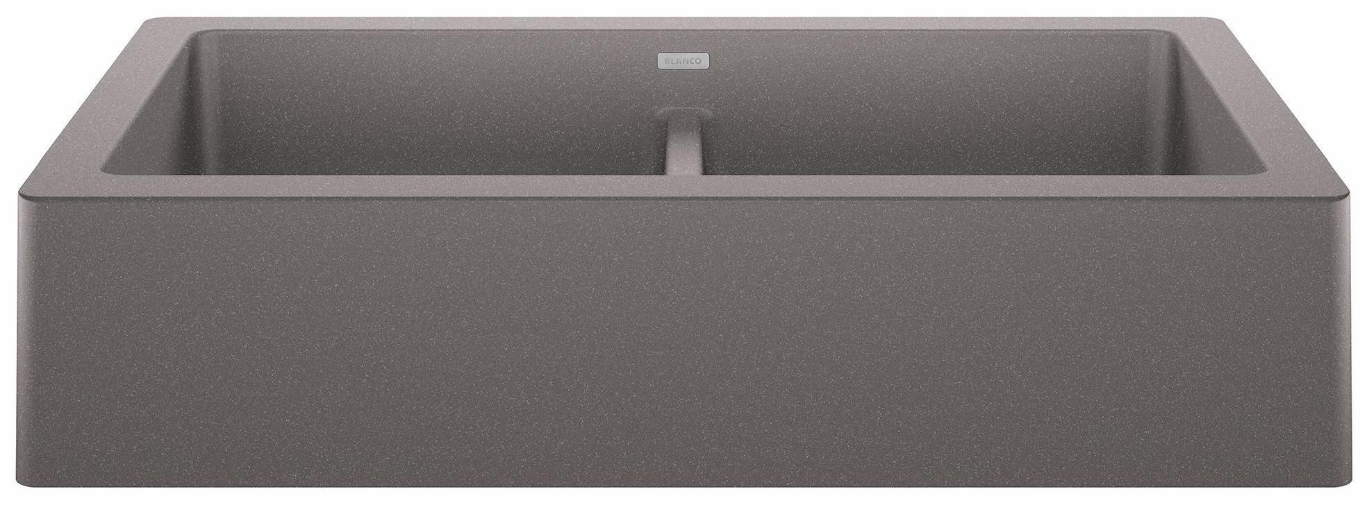 The VINTERA 33 EQUAL DOUBLE APRON kitchen sink provides a slim 6 1/2-inch apron, generous 9-inch bowl depth and two bowls ideal for multitasking. The VINTERA is a contemporary version of the farmhouse sink style with versatile installation capabilities, allowing for a unique flushmount placement. The VINTERA 33 fits into a standard base cabinet measuring 33 inches - the same width as the sink. This eliminates the need for custom cabinetry common with farmhouse sinks, making kitchen renovations easier. Made of BLANCO’s patented SILGRANIT® composite material, VINTERA sinks are engineered to withstand heavy cookware and hot bakeware. Strong and beautiful, Silgranit sinks are available in a range of nature-inspired colours that effortlessly complement the latest kitchen trends. Combine the VINTERA 33" sink with a BLANCO faucet and accessories to create a BLANCO UNIT; a seamless, fully-integrated kitchen solution designed to transform kitchen chores into joyful experiences.