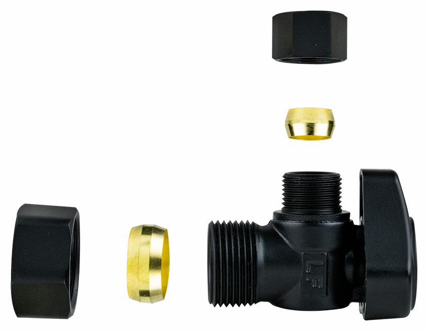BrassCraft 1/2 in. Nom Compression Inlet x 3/8 in. OD Compression Outlet 1/4-Turn Angle Valve controls water flow to household plumbing fixtures – faucets, toilets, dishwashers, icemakers, washing machines, etc. The angle valve is most often used where the water pipe enters the room from the wall. With a 90 degree turn of the valve handle, you are able to stop the flow of water leading to the plumbing fixture, allowing for maintenance and repair without shutting off the water to the entire home.