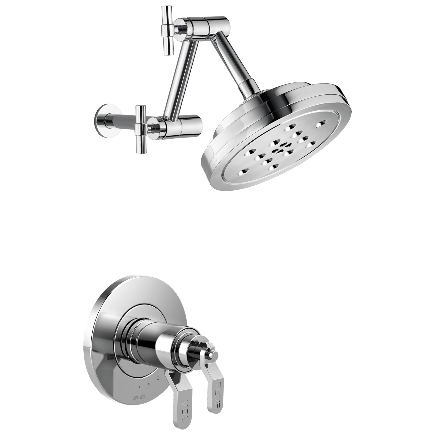 - Jointed solid brass shower arm with two locking hinges for positioning