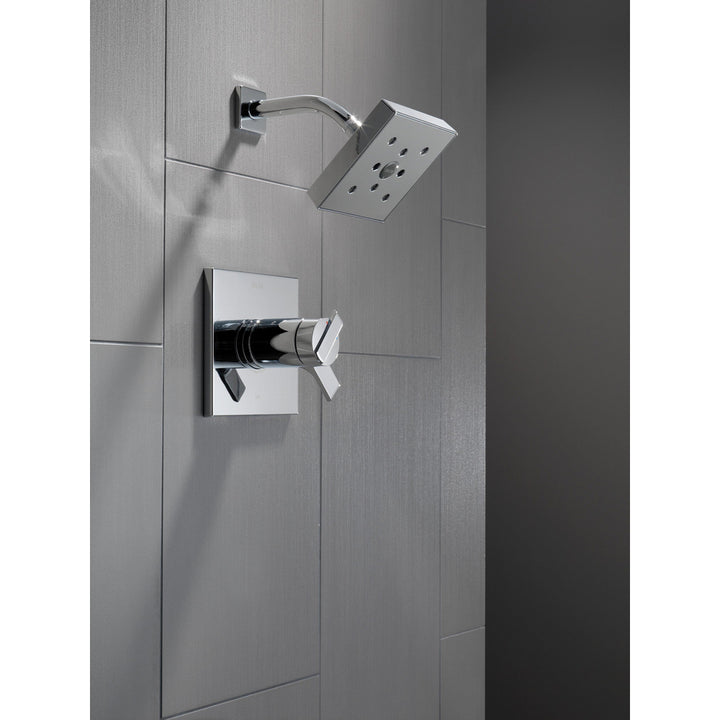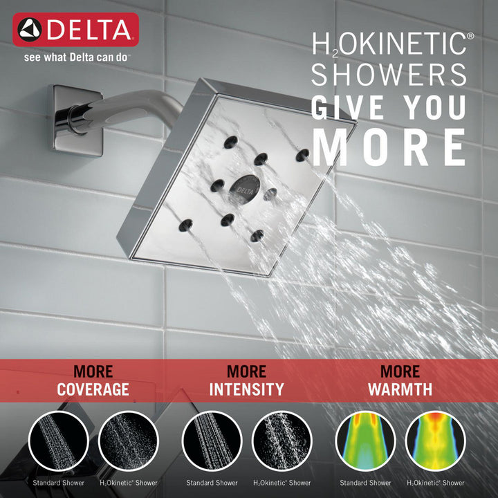 Delta H2Okinetic Showers look different because they are different. Using advanced technology, H2Okinetic showers sculpt water into a unique wave pattern, giving you 3X the coverage of a standard shower head.* The end result is a shower that provides more coverage, more warmth and more intensity for a truly drenching shower experience. With separate handles for volume and temperature control, this Delta tub/shower provides a more refined showering experience. Simply set the water at your preferred temperature and turn the shower on or off with the volume control handle - without interrupting your set temperature. Delta pressure-balance valves use Monitor Technology to protect you and your family from sudden temperature changes. Chrome has rapidly become one of the most popular finishes across décor styles in the bath thanks to its stunning gloss and innate versatility. Paired with crisp lines and bright whites, it creates a bold, modern contrast, but it works equally well with vintage styles and traditional spaces to convey a hint of nostalgia. Delta WaterSense labeled faucets, showers and toilets use at least 20% less water than the industry standard—saving you money without compromising performance.