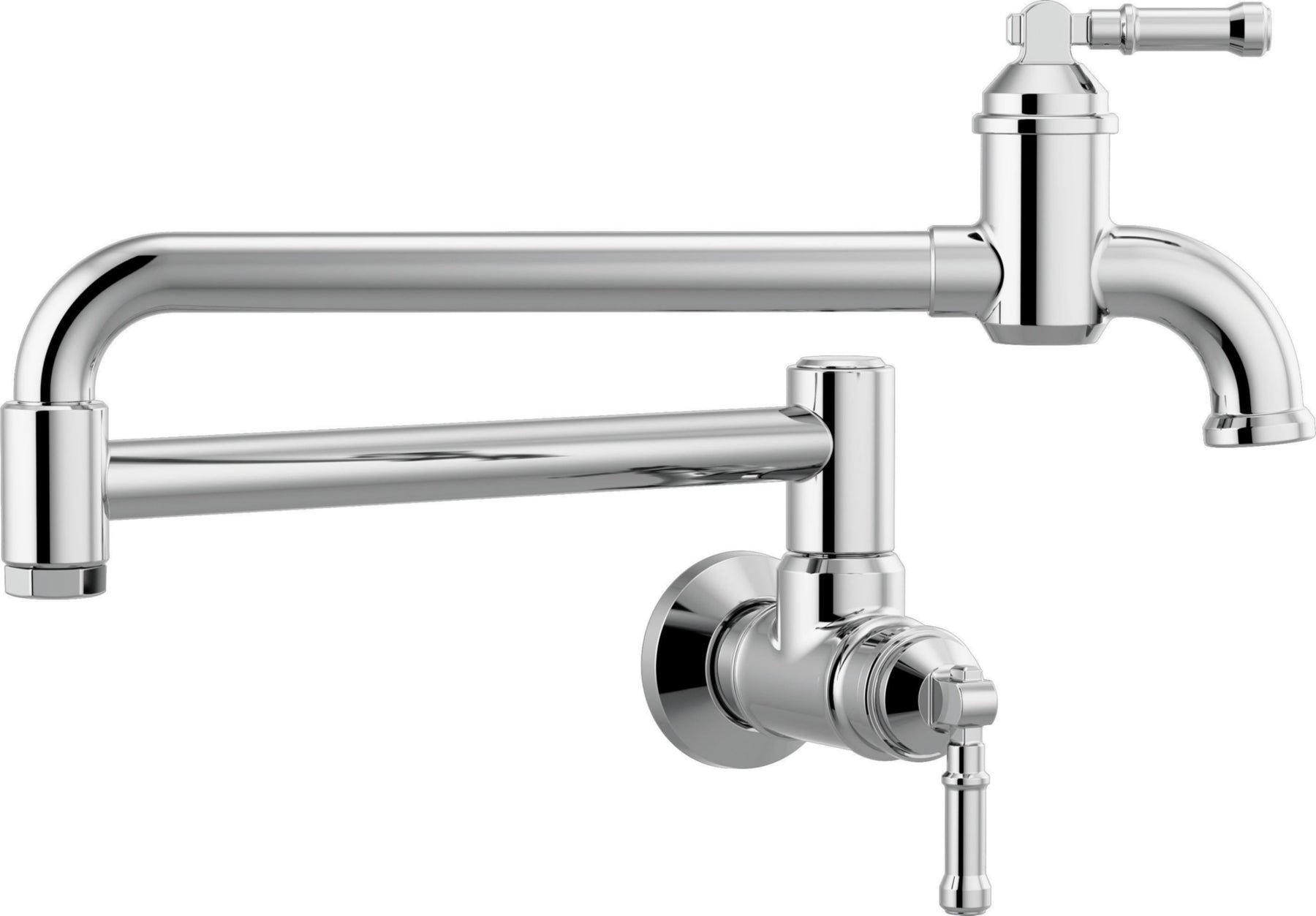 The powerful features of the Broderick Collection take center stage in the kitchen, with an industrial style that alludes to a rich heritage. The collection includes distinctive bridge faucet and pull-down spring spout faucet options that add a unique element to any kitchen. Styled after the rugged nuts and bolts of machinery, it serves as a true centerpiece in the kitchen. Filling pots on the stove has never been easier or more affordable, thanks to the new Delta Pot Filler faucet. A pot filler makes it easy to fill large cooking vessels quickly and without the walk from sink to stove. You can install with confidence, knowing that Delta kitchen faucets are backed by our Lifetime Limited Warranty.