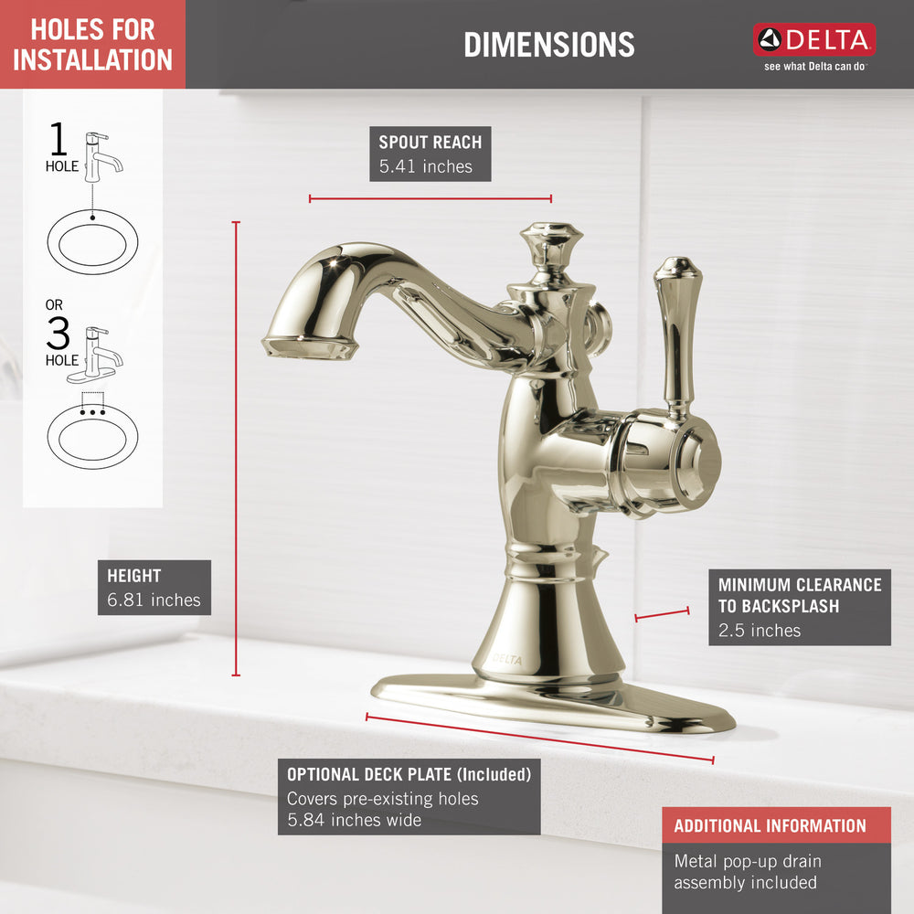 Featuring clean lines with elegant design details, the Cassidy Collection is an obvious choice for a timeless, traditionally styled bath. Delta faucets with Diamond Seal Technology perform like new for life with a patented design that reduces leak points, is less hassle to install and lasts twice as long as the industry standard. WaterSense labeled faucets use at least 20% less water than the industry standard — helping you save water without compromising performance. You can install with confidence, knowing that Delta faucets are backed by our Lifetime Limited Warranty.