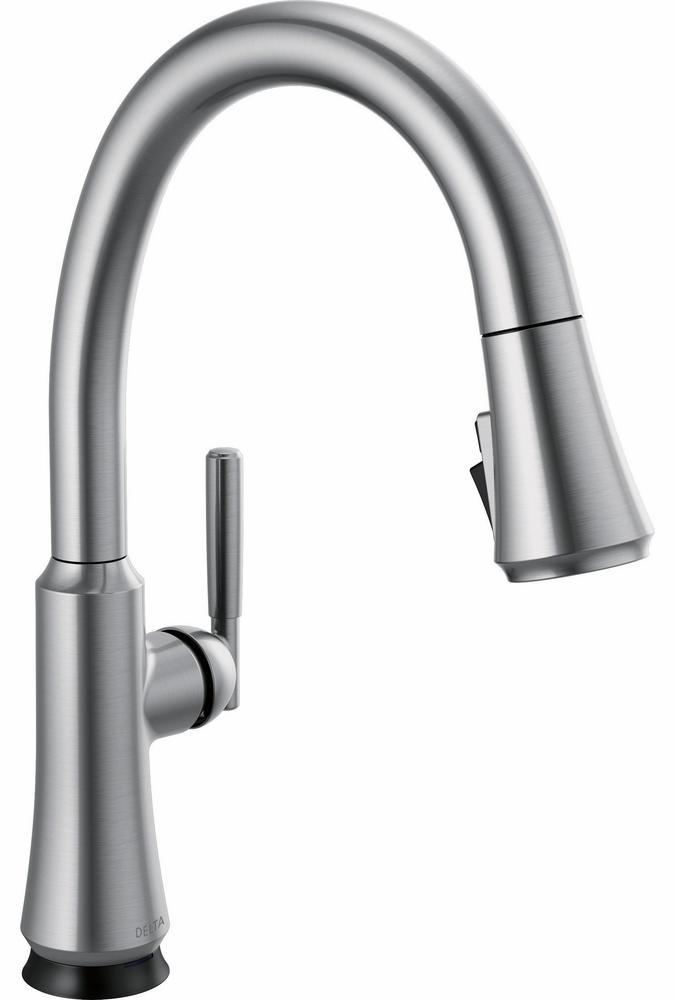 A contemporary take on traditional styling, the Coranto Kitchen Collection brings everyday refinement to a space with subtle design details. Life moves fast, Touchless Technology keeps up. Delta Touch2O faucets with Touchless Technology help keep germs and mess off your kitchen faucet and provides easy water control 3 ways: simply place your hand near the faucet, tap the faucet surface, or use standard handle activation. The TempSense LED light changes color to alert you to the water’s temperature and eliminate any possible surprises or discomfort. MagnaTite Docking uses a powerful integrated magnet to pull your faucet spray wand precisely into place and hold it there so it stays docked when not in use. ShieldSpray Technology cleans with laser-like precision while containing mess and splatter. A concentrated jet powers away stubborn messes while an innovative shield of water contains splatter and clears off the mess, so you can spend less time soaking, scrubbing and shirt swapping. Delta faucets with Diamond Seal Technology perform like new for life with a patented design which reduces leak points, is less hassle to install and lasts twice as long as the industry standard. You can install with confidence, knowing that Delta faucets are backed by our Lifetime Limited Warranty.