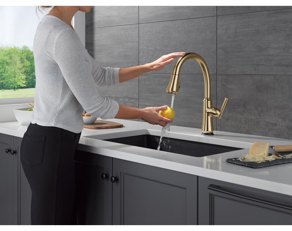 A contemporary take on traditional styling, the Coranto Kitchen Collection brings everyday refinement to a space with subtle design details. Life moves fast, Touchless Technology keeps up. Delta Touch2O faucets with Touchless Technology help keep germs and mess off your kitchen faucet and provides easy water control 3 ways: simply place your hand near the faucet, tap the faucet surface, or use standard handle activation. The TempSense LED light changes color to alert you to the water’s temperature and eliminate any possible surprises or discomfort. MagnaTite Docking uses a powerful integrated magnet to pull your faucet spray wand precisely into place and hold it there so it stays docked when not in use. Delta faucets with Diamond Seal Technology perform like new for life with a patented design which reduces leak points, is less hassle to install and lasts twice as long as the industry standard. You can install with confidence, knowing that Delta faucets are backed by our Lifetime Limited Warranty.
