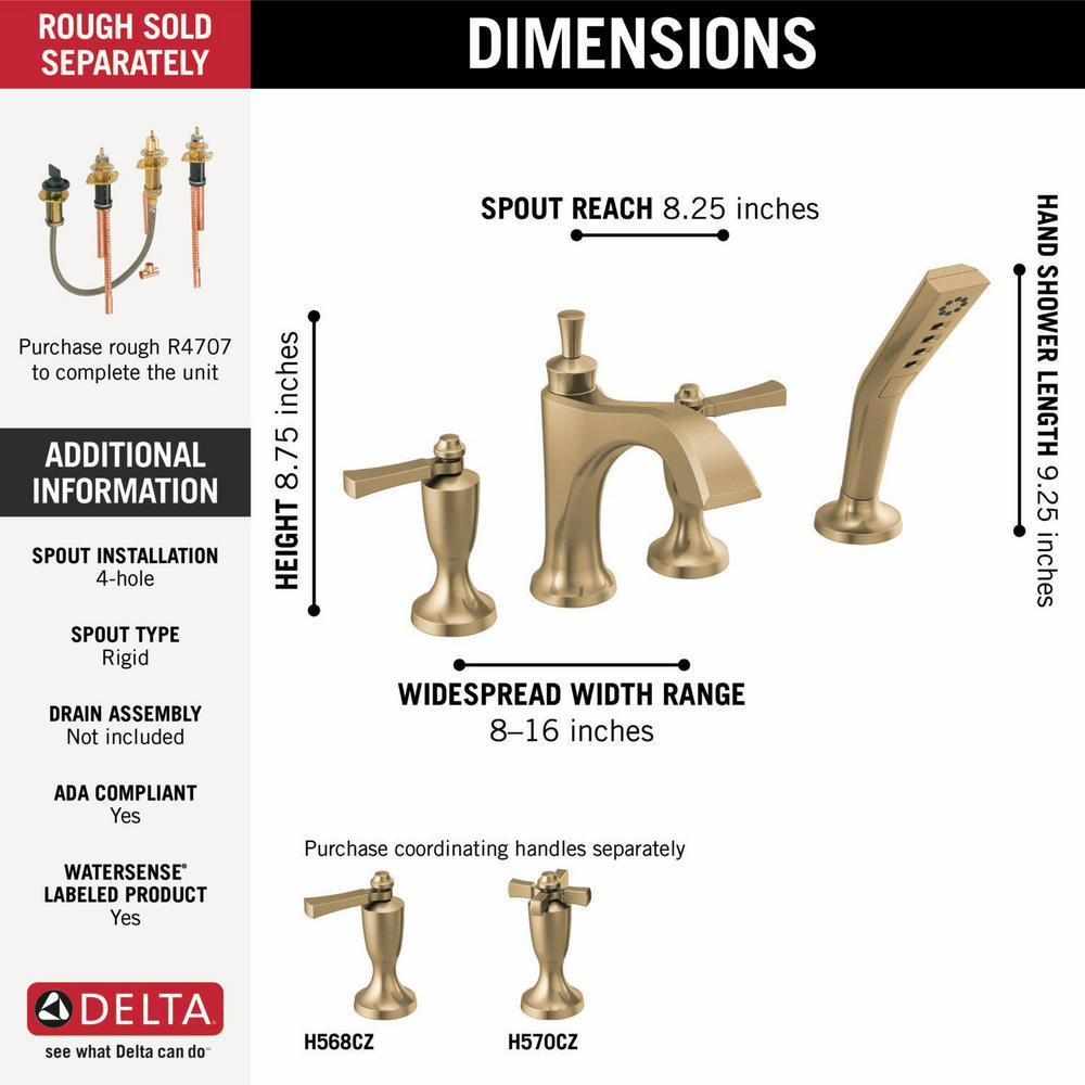 - Metal lever handle kit H568CZ or metal cross handle kit H570CZ coordinate perfectly with the Dorval bath collection