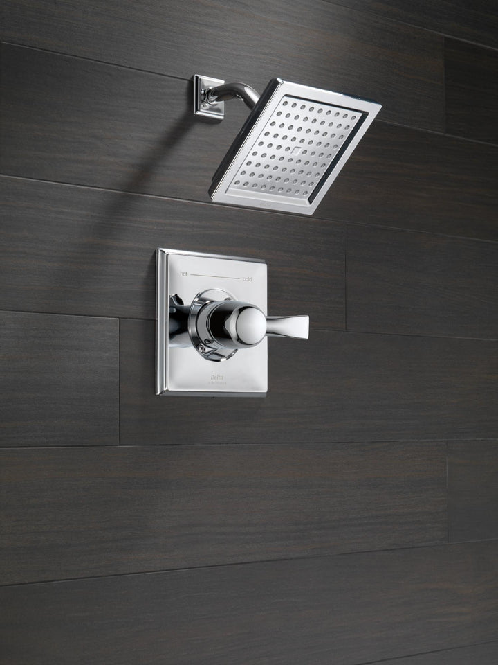 Designed to look like new for life, Brilliance finishes are developed using a proprietary process that creates a durable, long-lasting finish that is guaranteed not to corrode, tarnish or discolor. While other products may gather unsightly mineral build-up over time, Delta soft rubber Touch-Clean spray holes allow any mineral residue to simply be wiped away for an instantly refreshed look – with no need for soaking or the aid of chemical cleaners. Delta pressure-balance valves use Monitor Technology to protect you and your family from sudden temperature changes. Take the chill out of contemporary with the eloquent warmth of Champagne Bronze in your bath. This vibrant, gold finish provides a vivid splash of contrast to your space for a look that's simultaneously modern and nimble, able to pair elegantly with traditional, transitional and contemporary décor. Delta WaterSense labeled faucets, showers and toilets use at least 20% less water than the industry standard—saving you money without compromising performance.