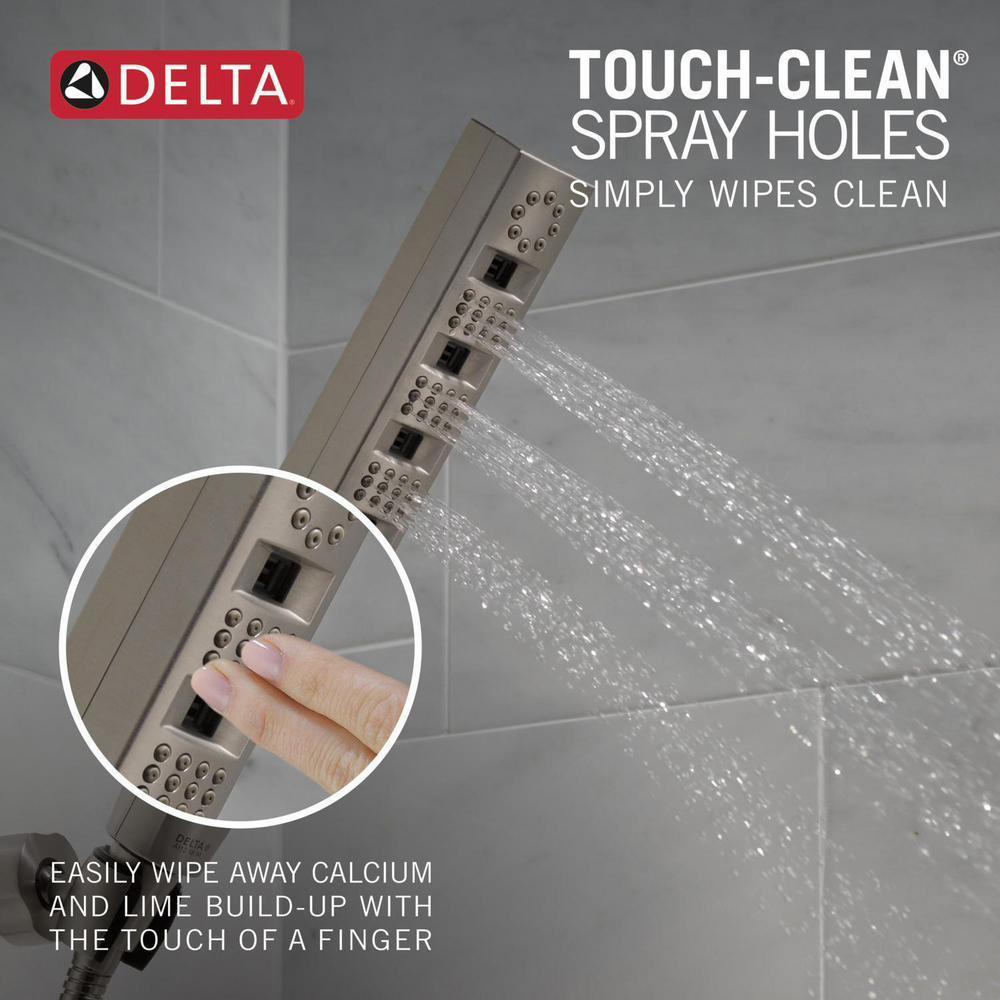- Soft, rubber Touch-Clean® spray holes allow you to easily wipe away calcium and lime buildup from the spray face of your shower head and hand shower with the touch of a finger