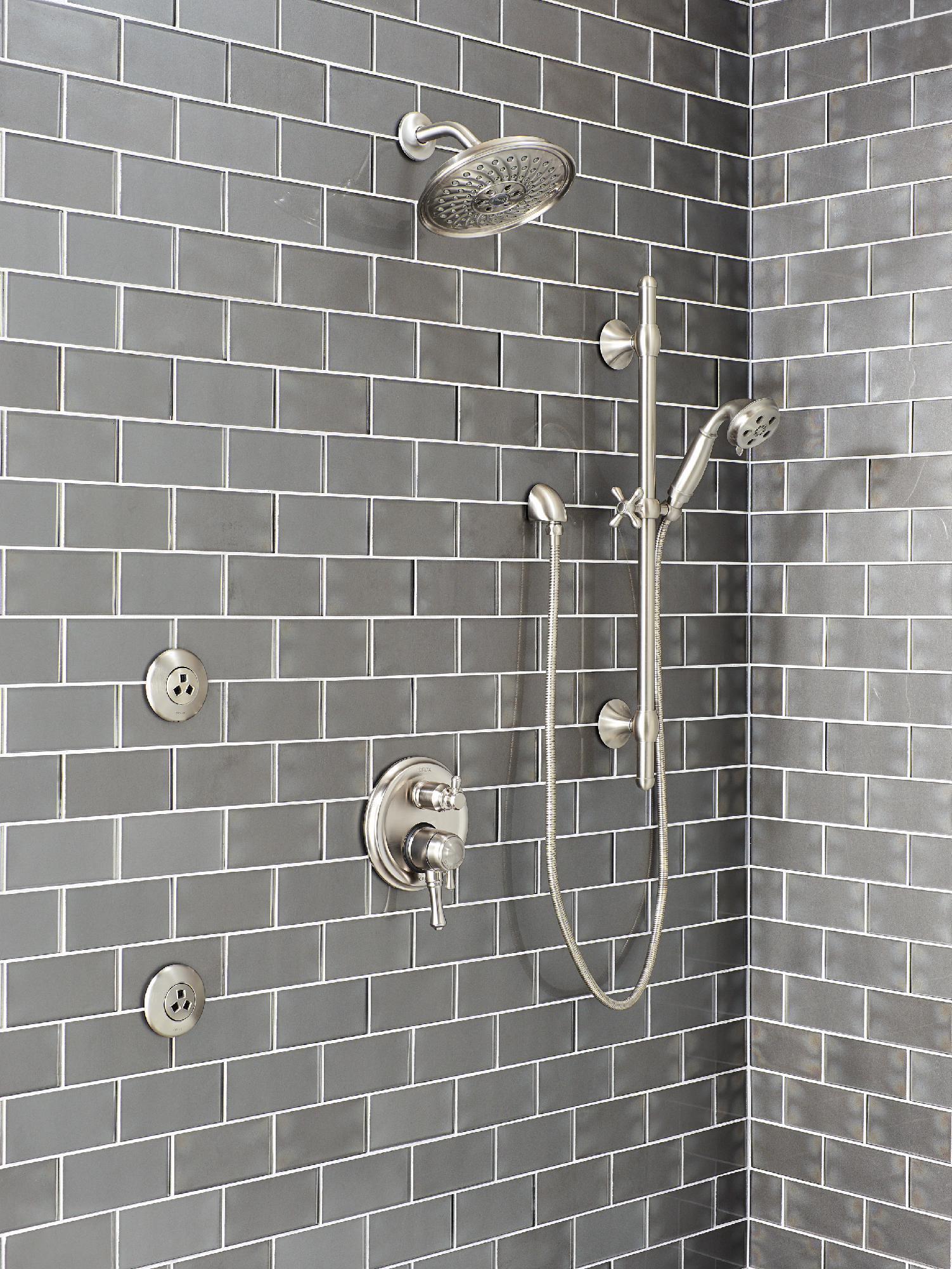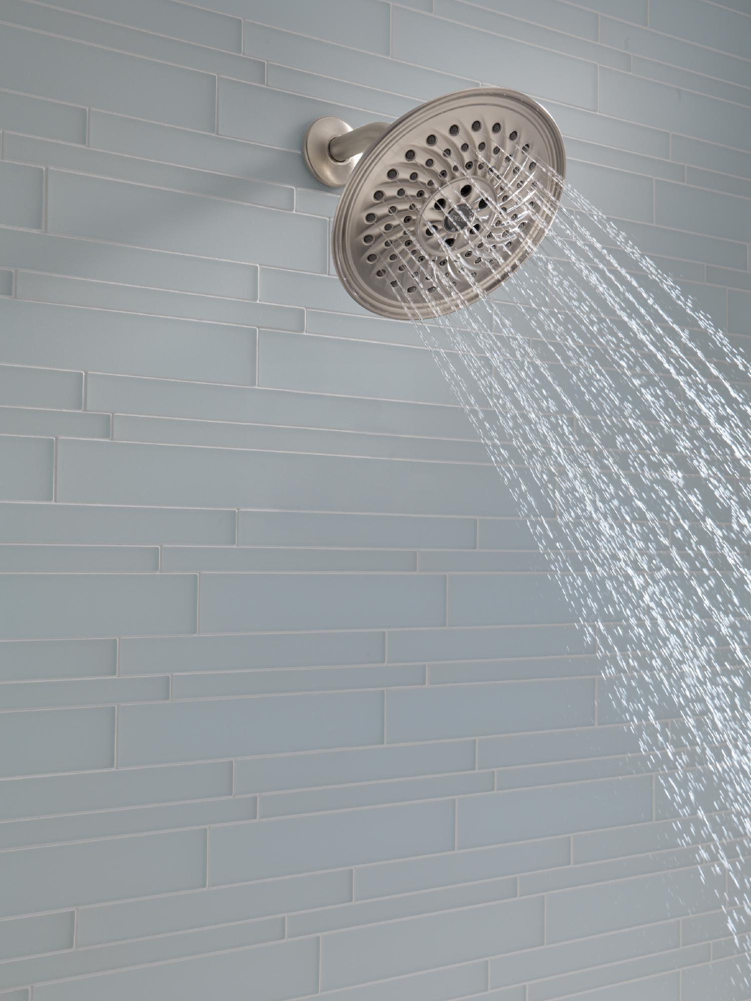 Replacing your shower head is one of the quickest, simplest upgrades you can make to your shower. Our shower heads feature a wide range of styles and innovations, and install in less than 20 minutes - no special tools required. Delta H2Okinetic Showers look different because they are different. Using advanced technology, H2Okinetic showers sculpt water into a unique wave pattern, giving you 3X the coverage of a standard shower head.* The end result is a shower that provides more coverage, more warmth and more intensity for a truly drenching shower experience. So go ahead and indulge, because now you can enjoy the feeling of more water without using more water. While other products may gather unsightly mineral build-up over time, Delta soft rubber Touch-Clean spray holes allow any mineral residue to simply be wiped away for an instantly refreshed look – with no need for soaking or the aid of chemical cleaners. The pause setting gives you ample space for shaving, lathering and other shower tasks, then easily restarts the water with the temperature where you left off. This spray setting helps you conserve water, so you can worry less about depleting your supply of hot water - and you help the environment too. Delta WaterSense labeled faucets, showers and toilets use at least 20% less water than the industry standard—saving you money without compromising performance.