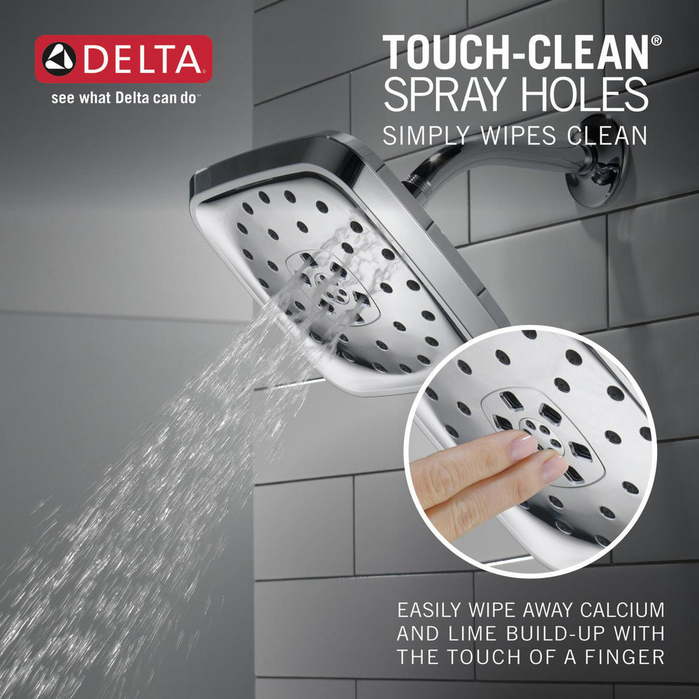 - Soft, rubber Touch-Clean® spray holes allow you to easily wipe away calcium and lime build-up from the spray face of your shower head and hand shower with the touch of a finger