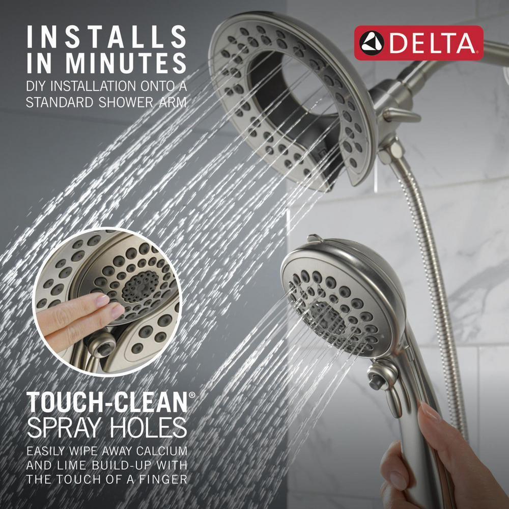 The Delta In2ition Two-in-One Shower features a detachable hand shower which can be used separately from or simultaneously with the shower head. This integrated dual-functionality gives you maximum flexibility without sacrificing warmth, as you can choose to have water streaming from the shower head only, the hand shower only or both the shower head and hand shower at once. While other products may gather unsightly mineral build-up over time, Delta soft rubber Touch-Clean spray holes allow any mineral residue to simply be wiped away for an instantly refreshed look — with no need for soaking or the aid of chemical cleaners. Delta WaterSense labeled faucets, showers and toilets use at least 20% less water than the industry standard — helping you save water without compromising performance. You can install with confidence, knowing that Delta showers are backed by our Lifetime Limited Warranty.