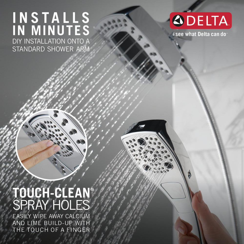 The Delta In2ition Two-in-One Shower features a detachable hand shower which can be used separately from or simultaneously with the shower head. This integrated dual-functionality gives you maximum flexibility without sacrificing warmth, as you can choose to have water streaming from the shower head only, the hand shower only or both the shower head and hand shower at once. Delta MagnaTite Docking uses a powerful integrated magnet to pull your In2ition hand shower precisely into place and hold it there so it stays docked when not in use. Delta WaterSense labeled faucets, showers and toilets use at least 20% less water than the industry standard — helping you save water without compromising performance. You can install with confidence, knowing that Delta showers are backed by our Lifetime Limited Warranty.