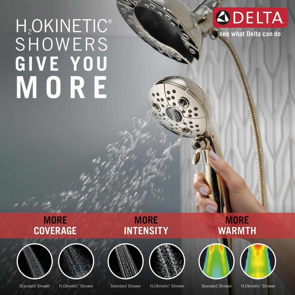 - H2Okinetic® Technology showers feel like more water and more pressure, with more coverage