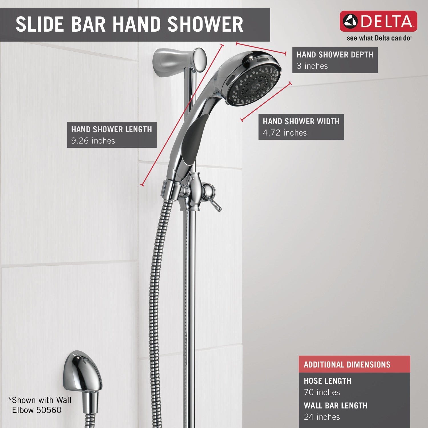 Experience a better shower with the control and flexibility of a Delta hand shower. Great for showering yourself or your loved ones and pets, as well as for keeping your shower and tub clean. Designed to look like new for life, Brilliance finishes are developed using a proprietary process that creates a durable, long-lasting finish that is guaranteed not to corrode, tarnish or discolor.