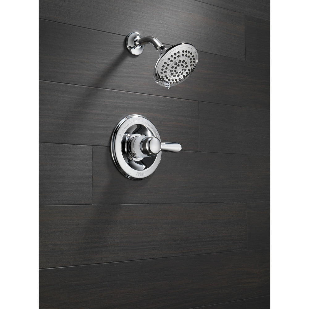 While other products may gather unsightly mineral build-up over time, Delta soft rubber Touch-Clean spray holes allow any mineral residue to simply be wiped away for an instantly refreshed look – with no need for soaking or the aid of chemical cleaners. Delta pressure-balance valves use Monitor Technology to protect you and your family from sudden temperature changes. Chrome has rapidly become one of the most popular finishes across décor styles in the bath thanks to its stunning gloss and innate versatility. Paired with crisp lines and bright whites, it creates a bold, modern contrast, but it works equally well with vintage styles and traditional spaces to convey a hint of nostalgia. Delta WaterSense labeled faucets, showers and toilets use at least 20% less water than the industry standard—saving you money without compromising performance.
