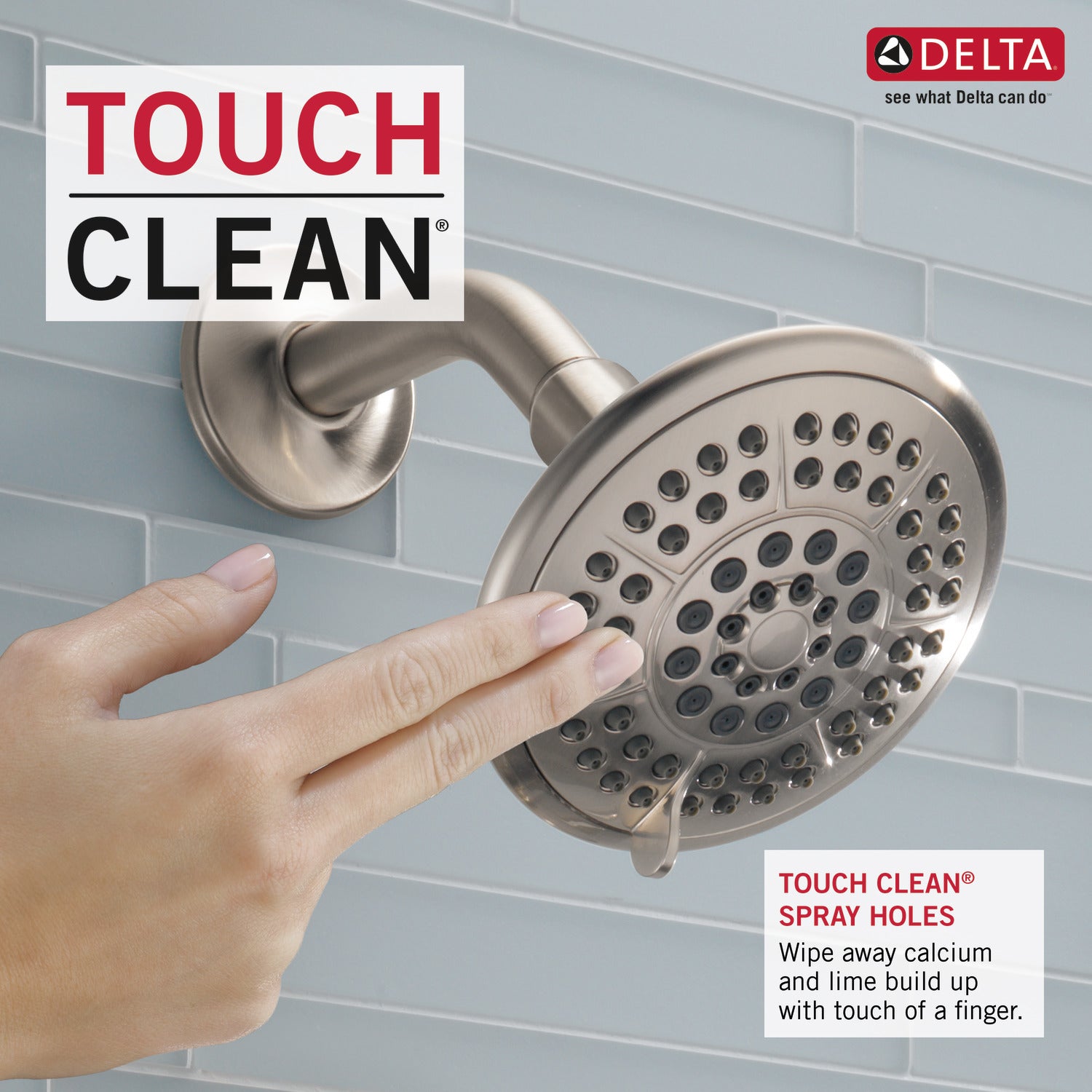 - Soft, rubber Touch-Clean spray holes allow you to easily wipe away calcium and lime build-up from the spray face of your shower head and hand shower with the touch of a finger