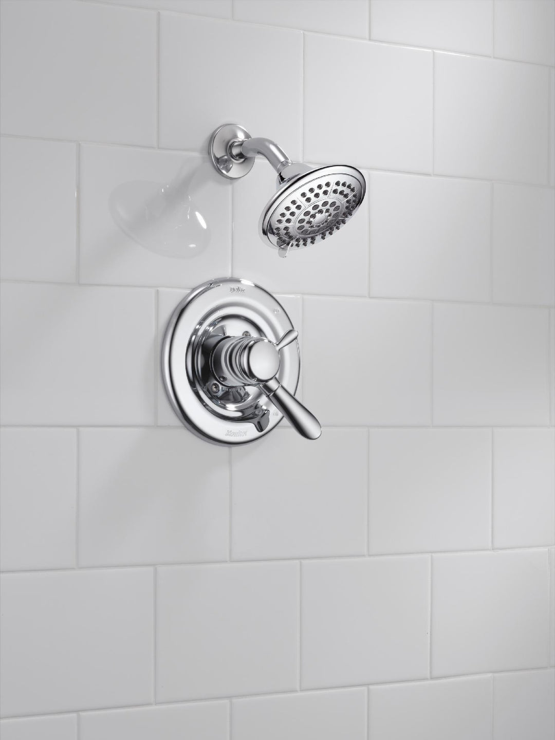 With separate handles for volume and temperature control, this Delta tub/shower provides a more refined showering experience. Simply set the water at your preferred temperature and turn the shower on or off with the volume control handle - without interrupting your set temperature. While other products may gather unsightly mineral build-up over time, Delta soft rubber Touch-Clean spray holes allow any mineral residue to simply be wiped away for an instantly refreshed look – with no need for soaking or the aid of chemical cleaners. Delta pressure-balance valves use Monitor Technology to protect you and your family from sudden temperature changes. Chrome has rapidly become one of the most popular finishes across décor styles in the bath thanks to its stunning gloss and innate versatility. Paired with crisp lines and bright whites, it creates a bold, modern contrast, but it works equally well with vintage styles and traditional spaces to convey a hint of nostalgia.