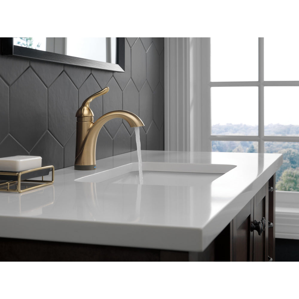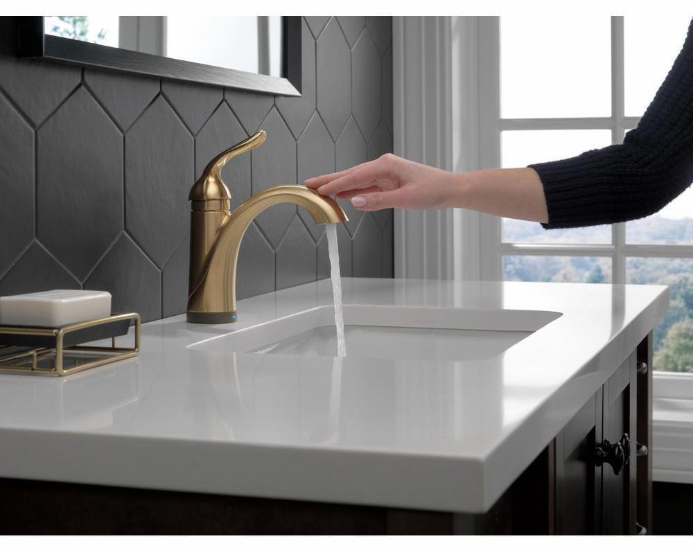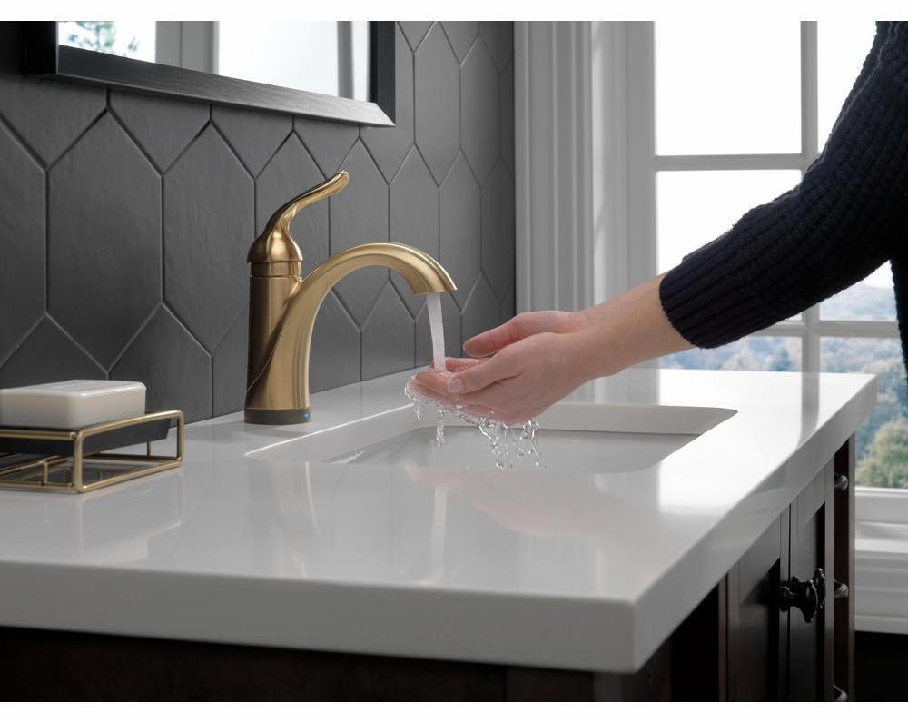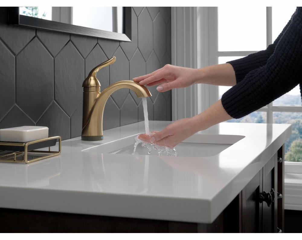 The curved handle and sleek spout of the Lahara Bath Collection make a lasting impression. Touch it on. Touch it off. Or go completely hands-free. Delta Touch2O with Touchless Technology helps keep your bathroom clean by giving you three ways to operate your faucet: manually with the handle, with a simple touch anywhere on the spout or handle, or by placing your hands near the faucet. The high-tech capacitance sensing capabilities of Touchless faucets allow the flow of water to be activated by breaking the capacitance field anywhere around the device, unlike traditional hands-free infrared sensors which require your hands be in a particular place and are sensitive to lighting conditions and clothing and skin color. WaterSense labeled faucets use at least 20% less water than the industry standard — helping you save water without compromising performance. You can install with confidence, knowing that this faucet is backed by Delta Faucet's Lifetime Limited Warranty on non-electronic parts and finishes and 5-Year Limited Warranty on electronic parts.