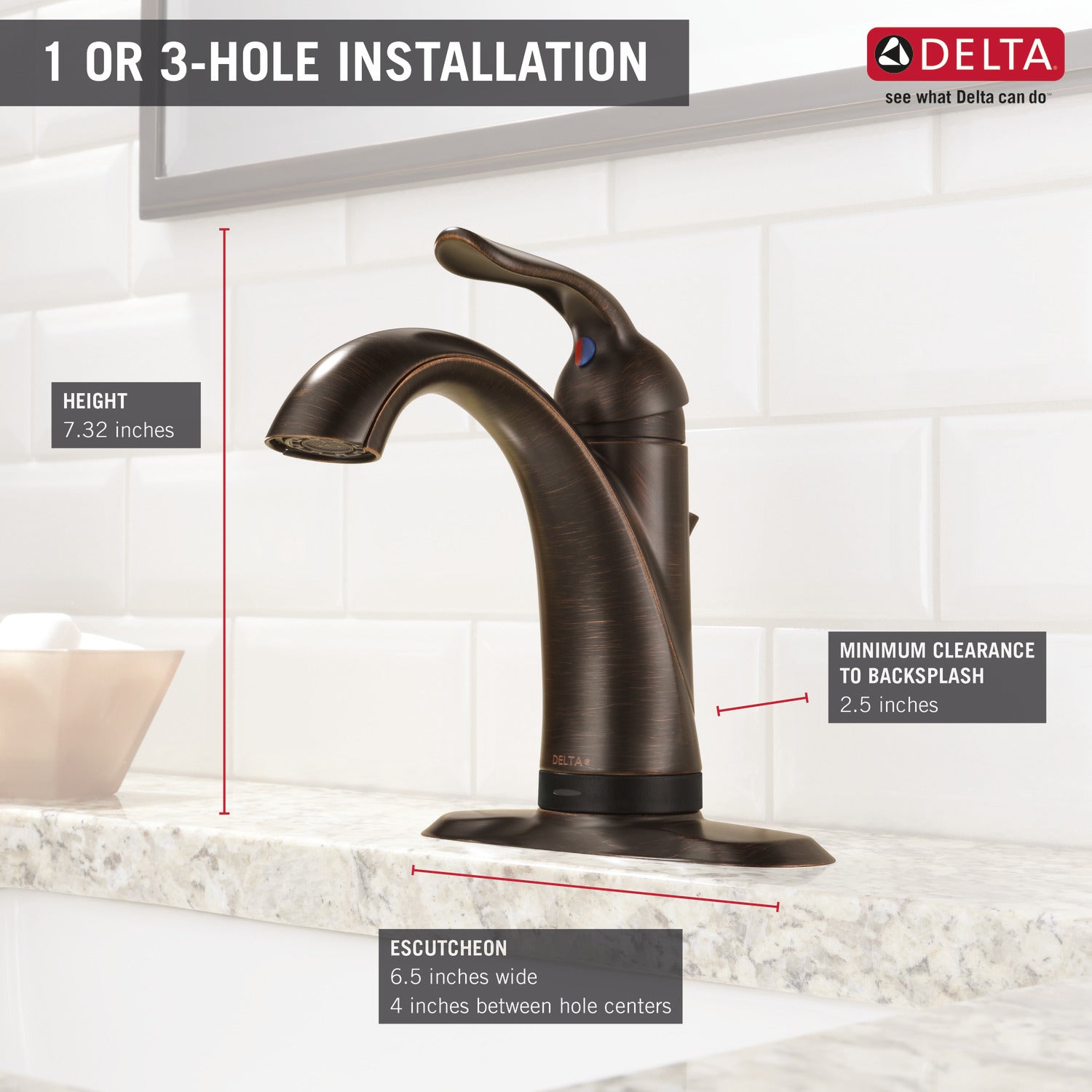 - Fits 1 or 3-hole 4-inch installations (with included 6-1/2 inch deck plate)