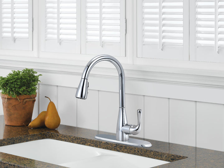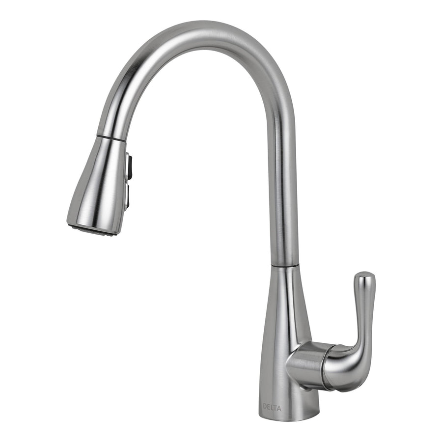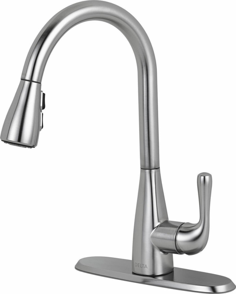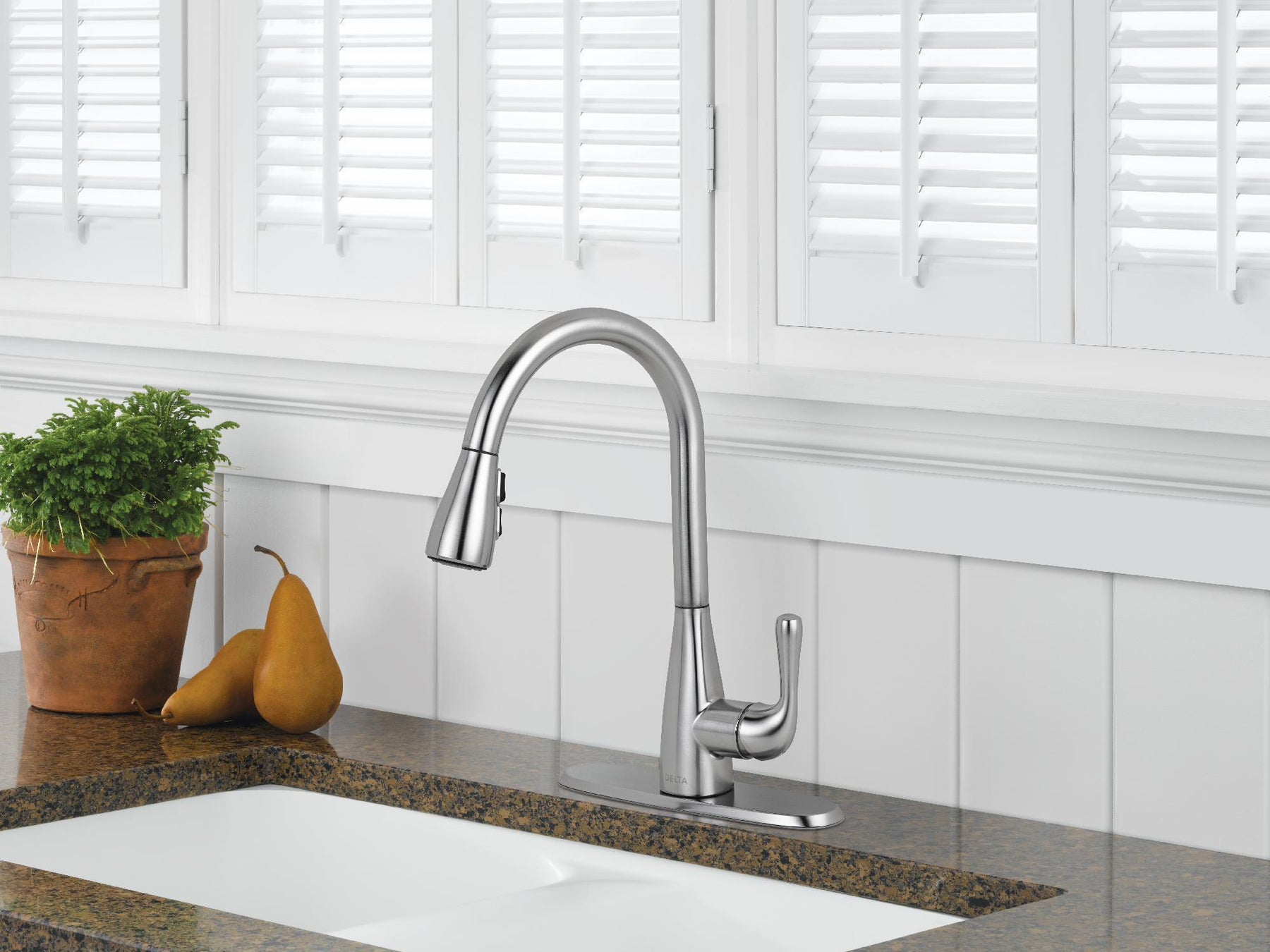 With a sleek, gently curving silhouette, the Marley kitchen faucet proves that contemporary style can also be timeless. Only Delta faucets are equipped with Touch-Clean soft, rubber nubbins that allow you to easily wipe away calcium and lime build-up with the touch of a finger.