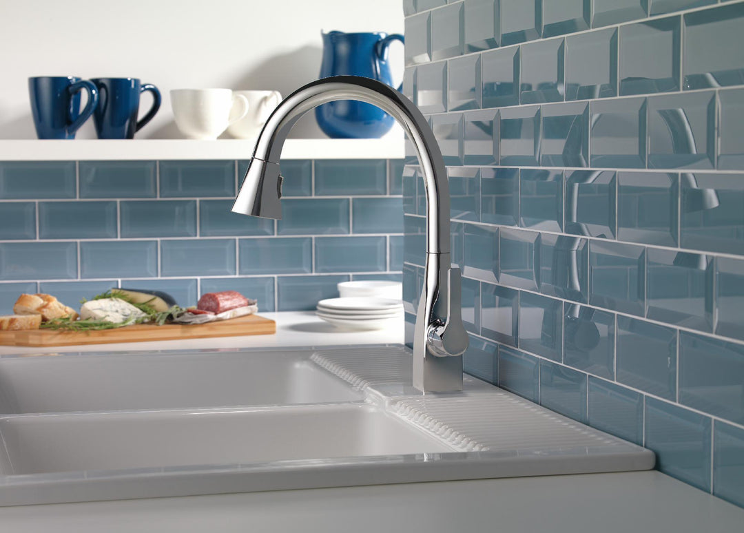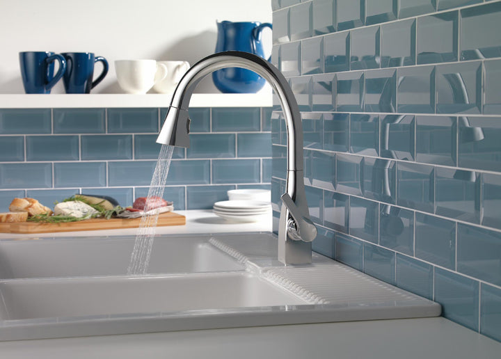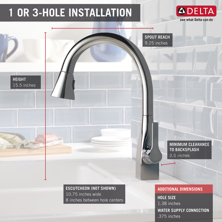 Delta MagnaTite Docking uses a powerful integrated magnet to pull your faucet spray wand precisely into place and hold it there so it stays docked when not in use. Delta ShieldSpray Technology cleans with laser-like precision while containing mess and splatter. A concentrated jet powers away stubborn messes while an innovative shield of water contains splatter and clears off the mess, so you can spend less time soaking, scrubbing and shirt swapping. Delta faucets with DIAMOND Seal Technology perform like new for life with a patented design which reduces leak points, is less hassle to install and lasts twice as long as the industry standard*. Kitchen faucets with Touch-Clean Spray Holes allow you to easily wipe away calcium and lime build-up with the touch of a finger. You can install with confidence, knowing that Delta faucets are backed by our Lifetime Limited Warranty. *Industry standard is based on ASME A112.18.1 of 500,000 cycles.
