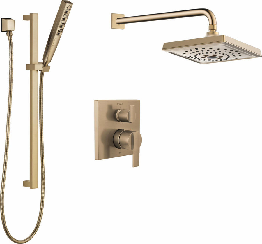 Monitor 14 Series Square Shower Kit with Stops - Champagne Bronze DF-KIT23-PBSCZ-WS Delta