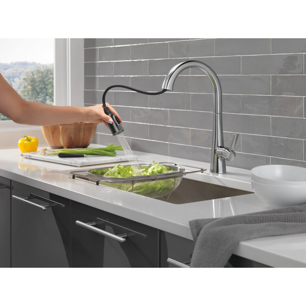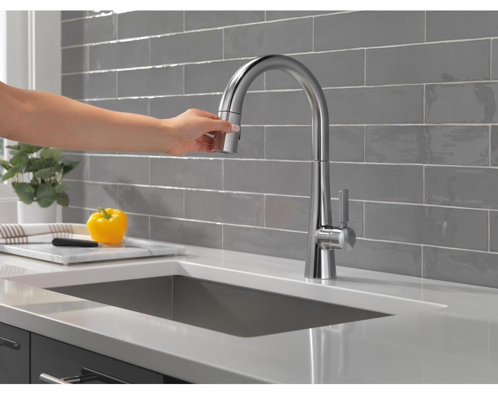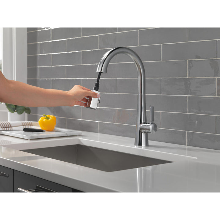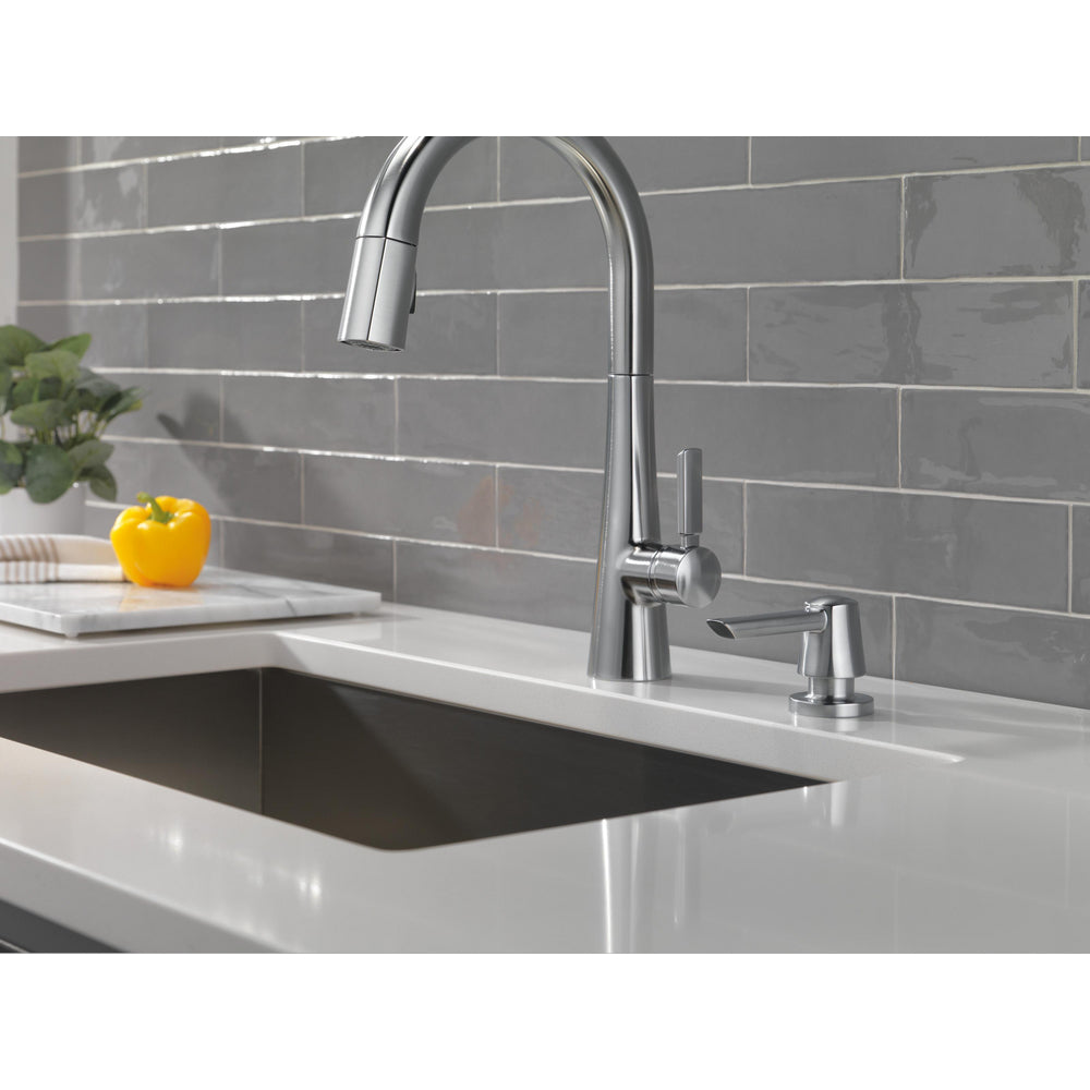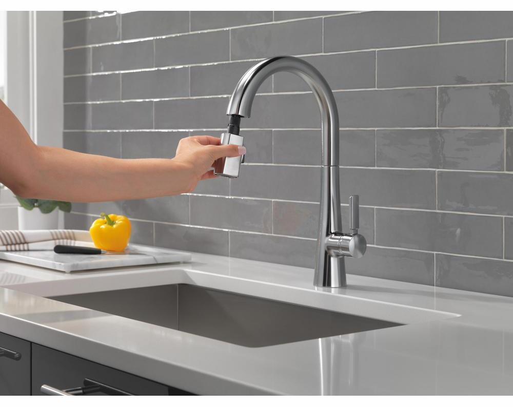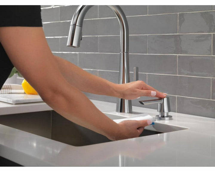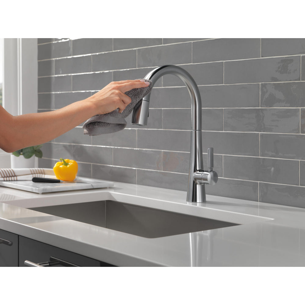 The Monrovia Kitchen Collection stands out in any space with its statuesque form and striking handle design. Delta MagnaTite Docking uses a powerful integrated magnet to set your pull down sprayer precisely into place and hold it there so it stays docked when not in use. Delta Lumicoat Finishes are guaranteed to resist water spots and mineral buildup and easily wipe clean without the need for cleaners or chemicals. The ultra-sleek surface repels liquids, resisting water spots and staying cleaner longer, so your faucet stays beautiful. You can install with confidence, knowing that Delta kitchen faucets are backed by our Lifetime Limited Warranty.