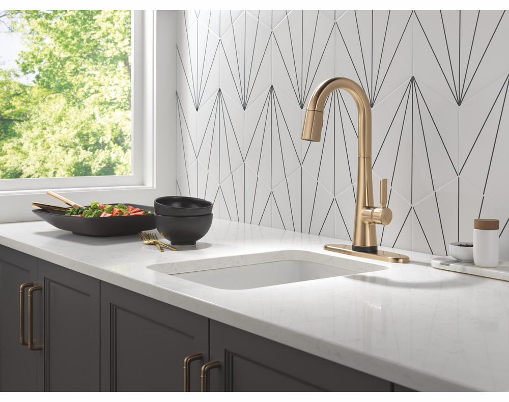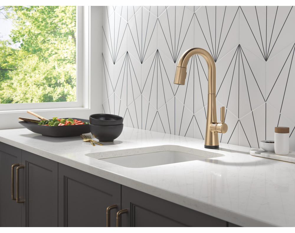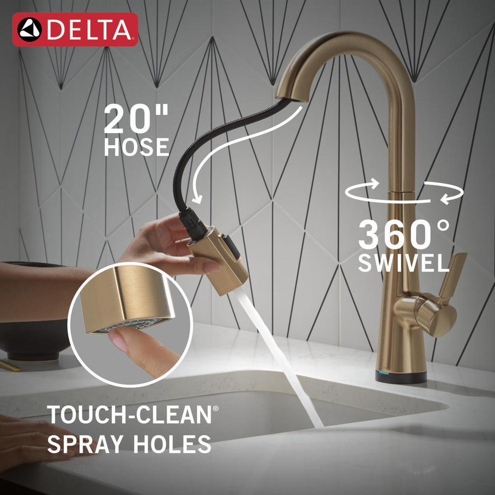 The Monrovia Kitchen Collection stands out in any space with its statuesque form and striking handle design. Delta Touch2O faucets with Touchless Technology help keep germs and mess off your kitchen faucet and provides easy water control 3 ways: simply place your hand near the faucet, tap the faucet surface, or use standard handle activation. The TempSense LED light changes color to alert you to the water’s temperature and eliminate any possible surprises or discomfort. MagnaTite Docking uses a powerful integrated magnet to pull your faucet spray wand precisely into place and hold it there so it stays docked when not in use. Delta faucets with Diamond Seal Technology perform like new for life with a patented design which reduces leak points, is less hassle to install and lasts twice as long as the industry standard. You can install with confidence, knowing that Delta faucets are backed by our Lifetime Limited Warranty.