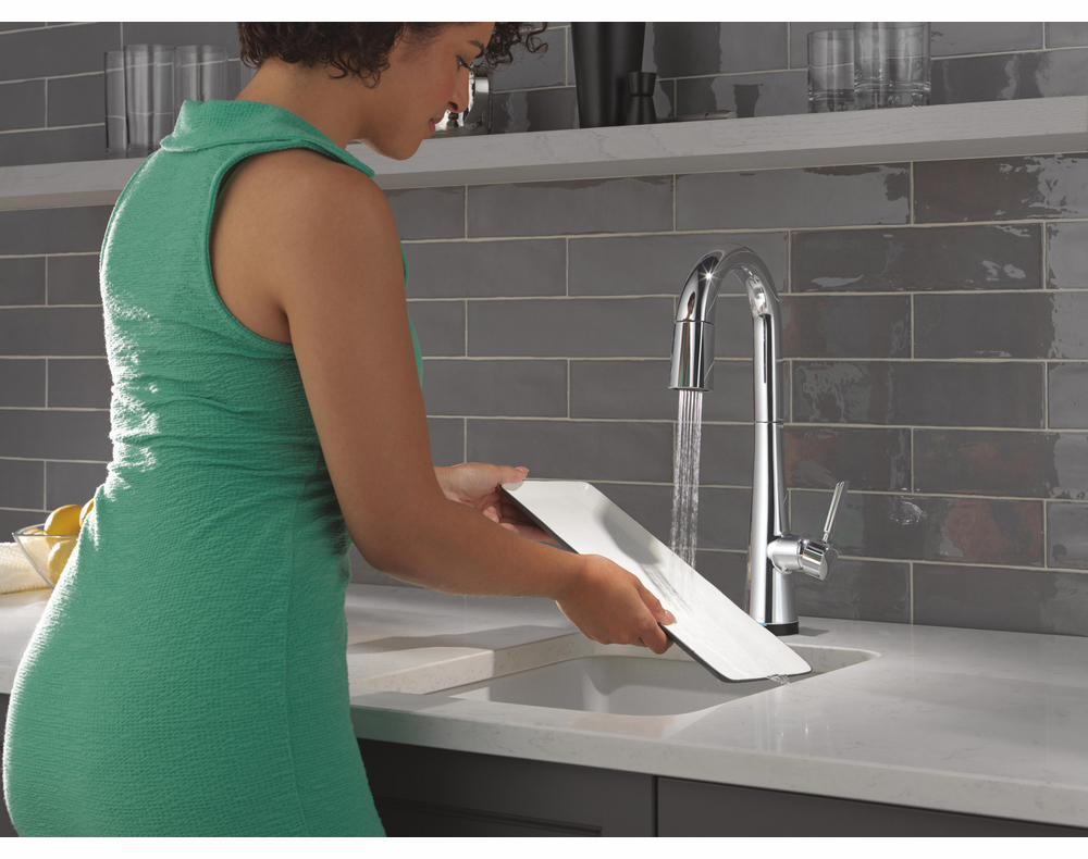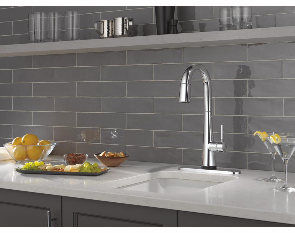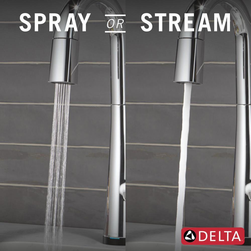 The Monrovia Kitchen Collection stands out in any space with its statuesque form and striking handle design. Delta Touch2O faucets with Touchless Technology help keep germs and mess off your kitchen faucet and provides easy water control 3 ways: simply place your hand near the faucet, tap the faucet surface, or use standard handle activation. The TempSense LED light changes color to alert you to the water’s temperature and eliminate any possible surprises or discomfort. MagnaTite Docking uses a powerful integrated magnet to pull your faucet spray wand precisely into place and hold it there so it stays docked when not in use. Delta faucets with Diamond Seal Technology perform like new for life with a patented design which reduces leak points, is less hassle to install and lasts twice as long as the industry standard. You can install with confidence, knowing that Delta faucets are backed by our Lifetime Limited Warranty.
