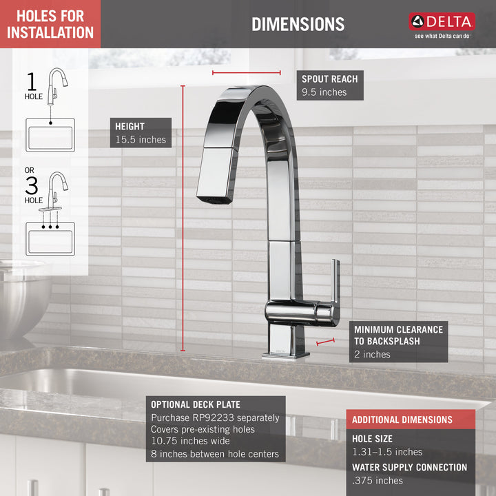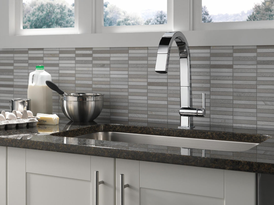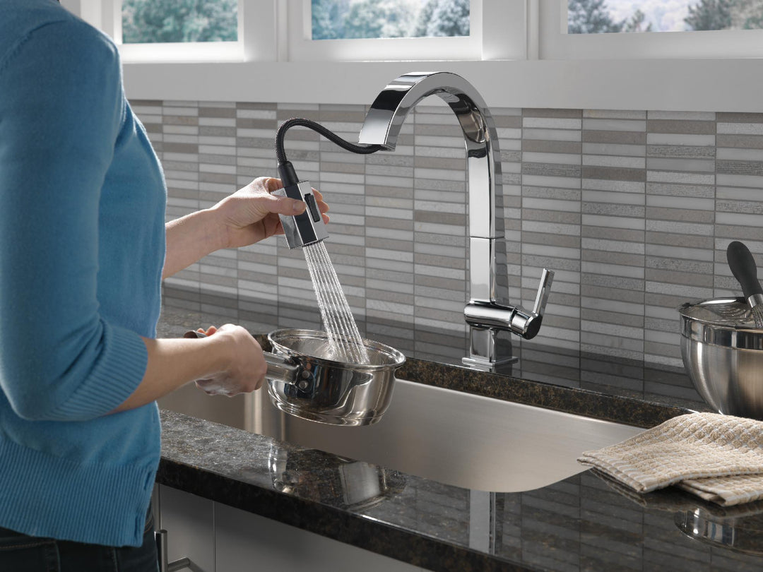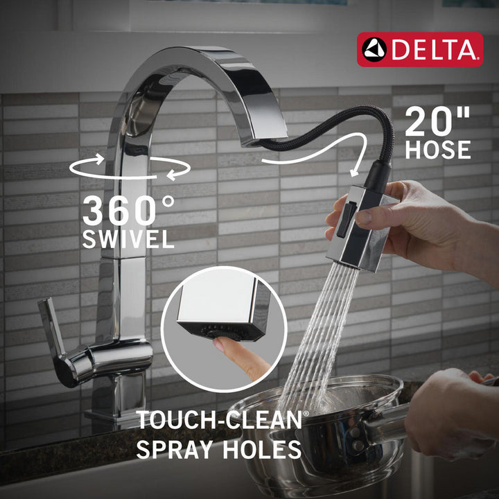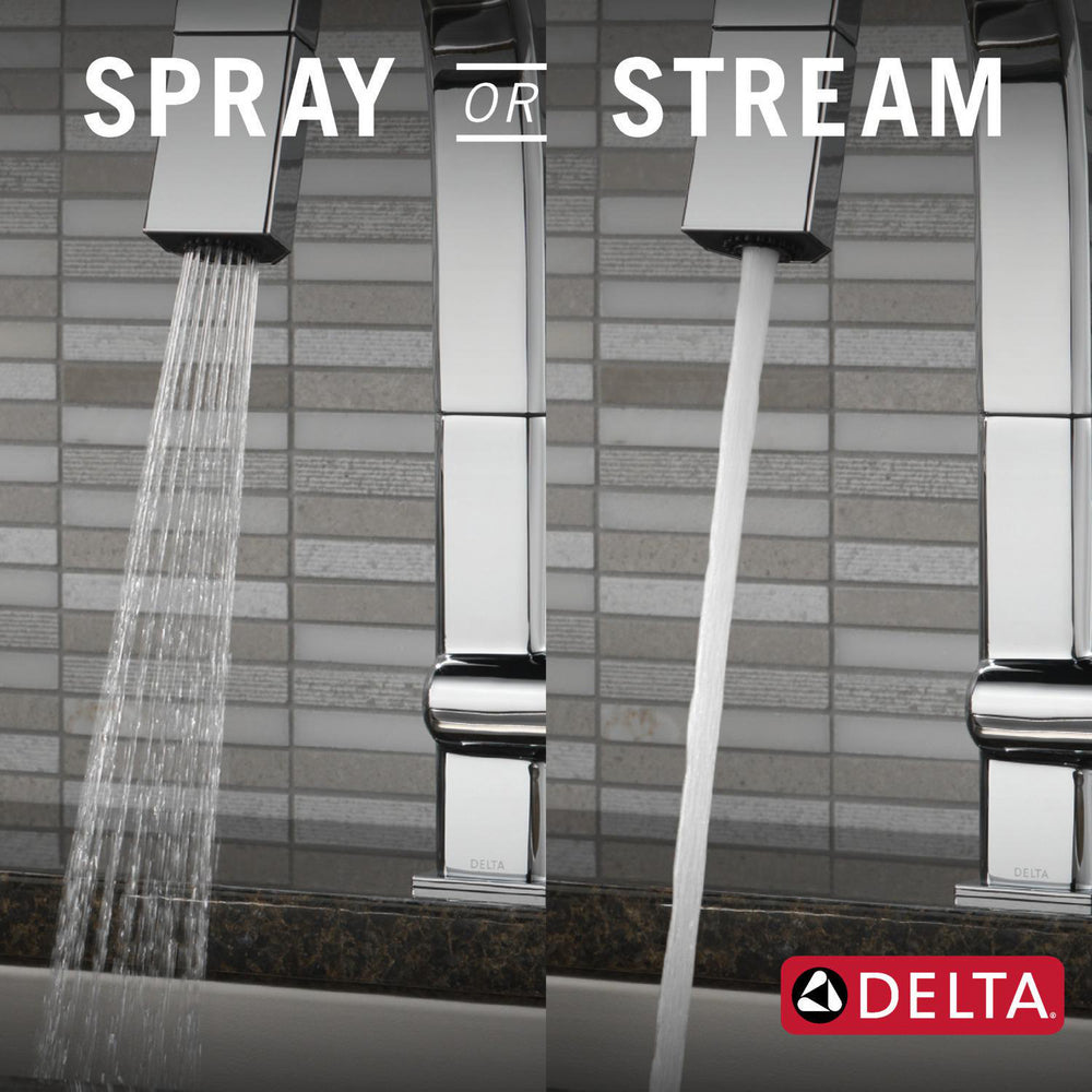 The confident slant of the Pivotal™ Collection makes it a striking addition to your kitchen’s contemporary geometry for a look that makes a statement. Delta® MagnaTite® Docking uses a powerful integrated magnet to pull your faucet spray wand precisely into place and hold it there so it stays docked when not in use. Delta® faucets with DIAMOND™ Seal Technology perform like new for life with a patented design which reduces leak points, is less hassle to install and lasts twice as long as the industry standard*. You can install with confidence, knowing that Delta faucets are backed by our Lifetime Limited Warranty. *Industry standard is based on ASME A112.18.1 of 500,000 cycles.