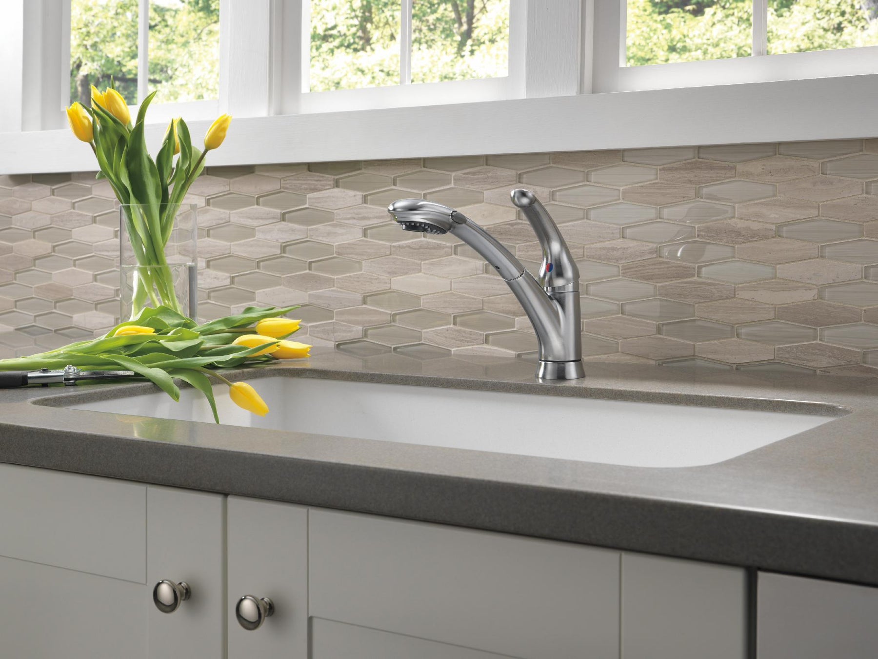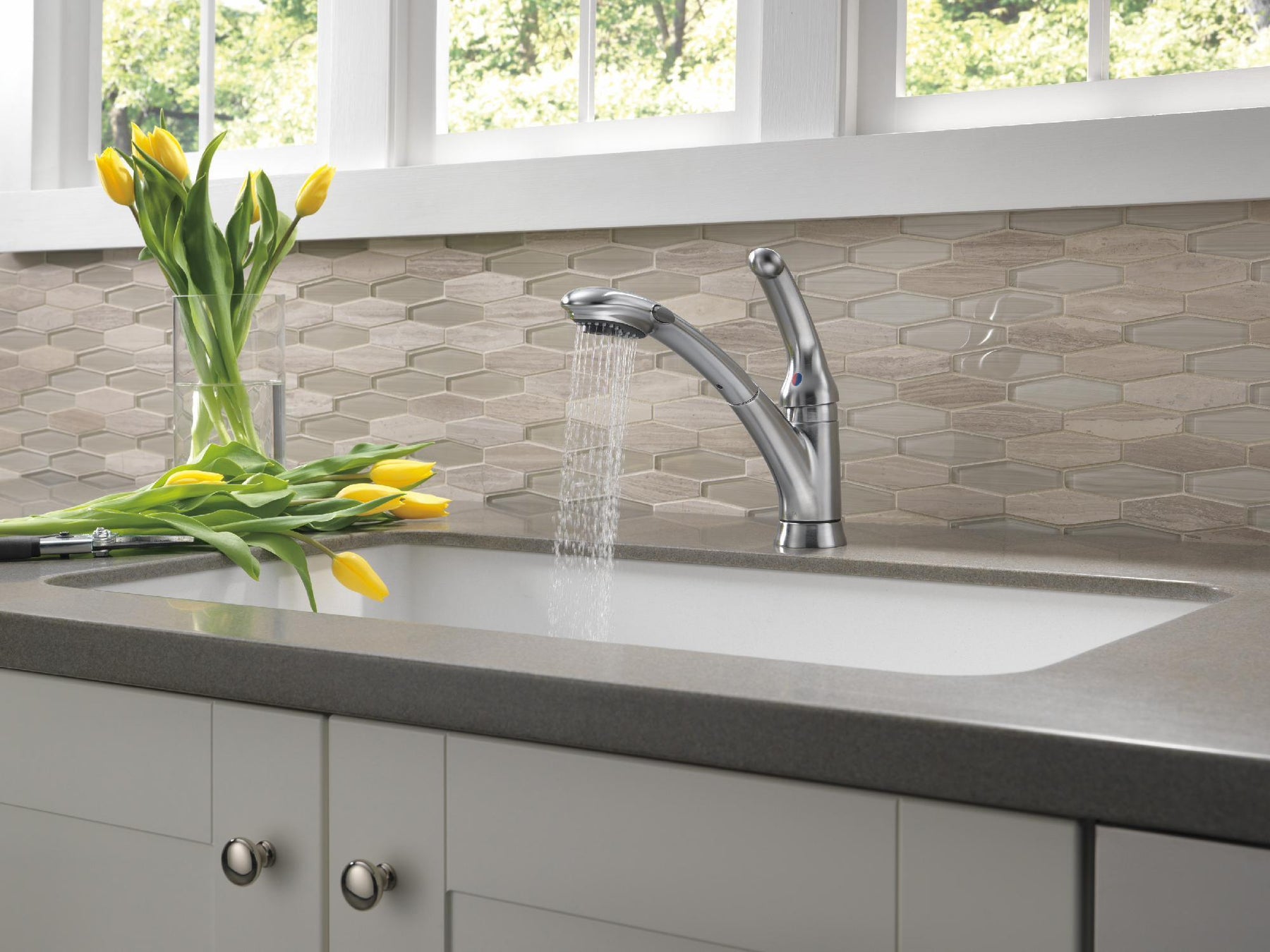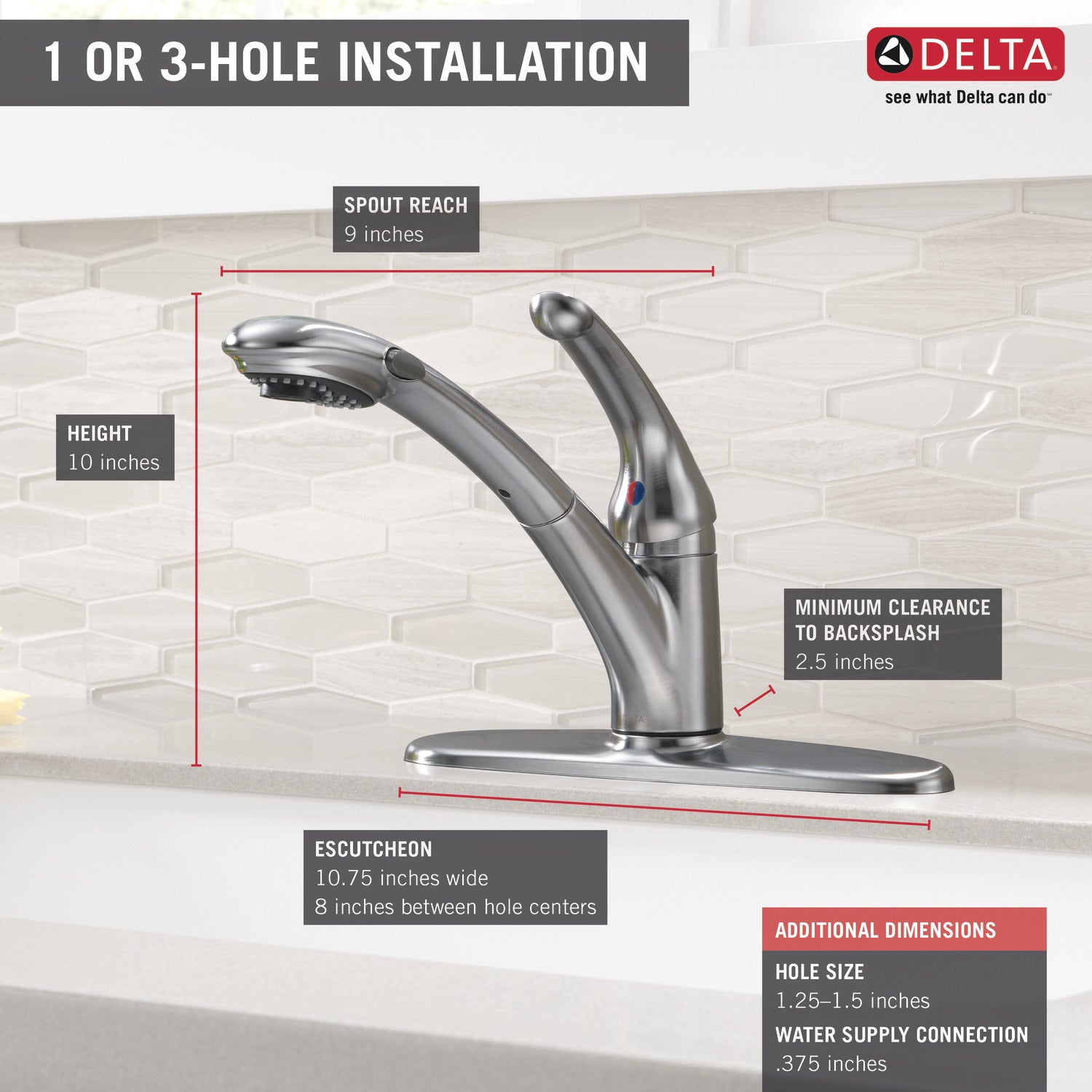 Delta® faucets with DIAMOND™ Seal Technology perform like new for life with a patented design which reduces leak points, is less hassle to install and lasts twice as long as the industry standard*. Kitchen faucets with Touch-Clean® Spray Holes allow you to easily wipe away calcium and lime build-up with the touch of a finger. You can install with confidence, knowing that Delta faucets are backed by our Lifetime Limited Warranty. *Industry standard is based on ASME A112.18.1 of 500,000 cycles.