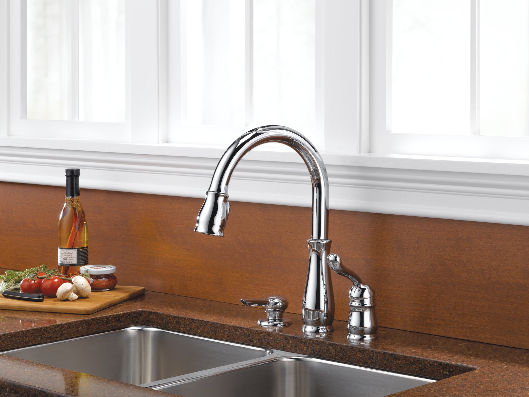 This Countertop-Mount Soap Dispenser is an essential component to a coordinated kitchen. Perfectly coordinating with the transitional and contemporary kitchen faucet collections, this soap dispenser adds convenience to your workspace without sacrificing style. You can count on Delta reliability throughout the home, including our accessories and repair parts. We back each and every item with our lifetime limited warranty.