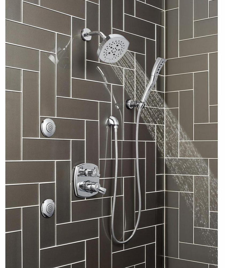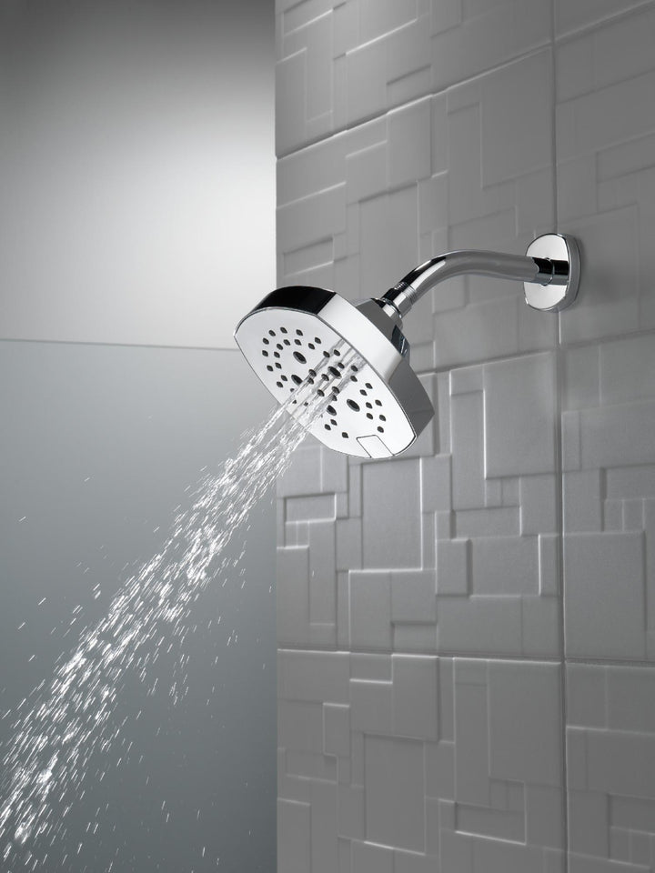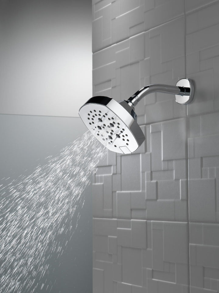 The Stryke Bath Collection radiates confidence and composure with an assured stature and ascending contours. Designed to be integral to both your bathrooms everyday use and personalized style, Stryke's robust design breathes intrigue into any space in your home. Delta H2Okinetic Power Drench Showers look different because they are different. H2Okinetic showers are powered by an innovative technology that sculpts the water into a unique wave pattern, giving you the feeling of more water without using more water and creating a shower with more warmth, coverage, and intensity. The pause setting gives you ample space for shaving, lathering and other shower tasks, without worrying about overspray or water waste. This spray setting helps you conserve water, so you can worry less about depleting your supply of hot water - and you help the environment too. Replacing your shower head is one of the quickest, simplest upgrades you can make to your shower. Our shower heads feature a wide range of styles and innovations, and install in less than 20 minutes - no special tools required. Delta WaterSense labeled showers use at least 20% less water than the industry standard saving you money without compromising performance.