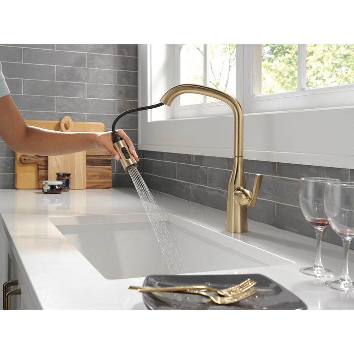 With subtly upturned spout and handles, Stryke® Kitchen Collection faucets radiate confidence and include thoughtful innovations to enhance everyday use. Delta® MagnaTite® Docking uses a powerful integrated magnet to set your pull down sprayer precisely into place and hold it there so it stays docked when not in use. Delta Lumicoat™ Finishes easily wipe clean without the need for cleaners or chemicals and are guaranteed to resist mineral buildup and hard water stains. The ultra-sleek surface repels liquids, resisting water spots and staying cleaner longer, so your faucet stays beautiful. You can install with confidence, knowing that Delta kitchen faucets are backed by our Lifetime Limited Warranty.