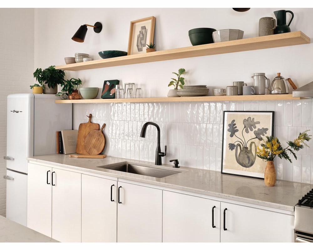 With subtly upturned spout and handles, Stryke Kitchen Collection faucets radiate confidence and include thoughtful innovations to enhance everyday use. Delta MagnaTite Docking uses a powerful integrated magnet to set your pull down sprayer precisely into place and hold it there so it stays docked when not in use. Delta kitchen faucets with DIAMOND Seal Technology perform like new for life with a patented design which reduces leak points, is less hassle to install and lasts twice as long as the industry standard. You can install with confidence, knowing that Delta kitchen faucets are backed by our Lifetime Limited Warranty.