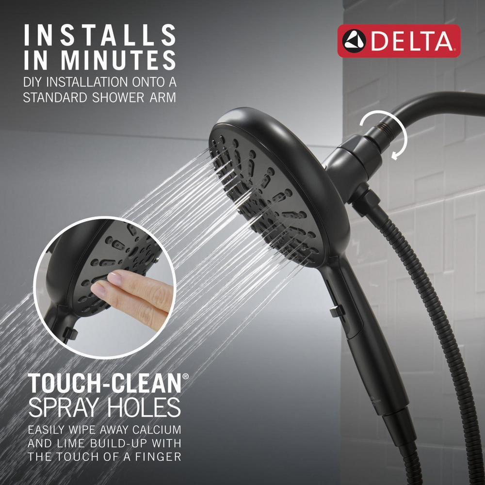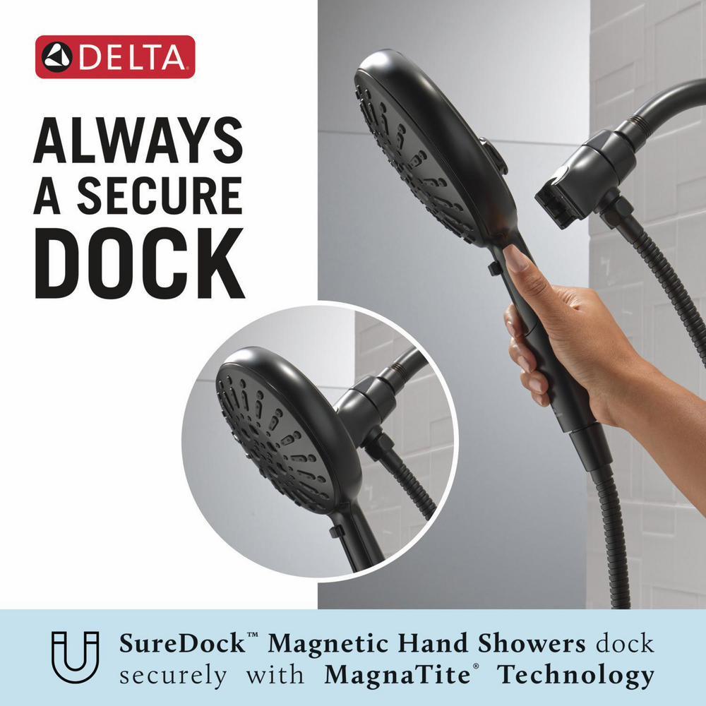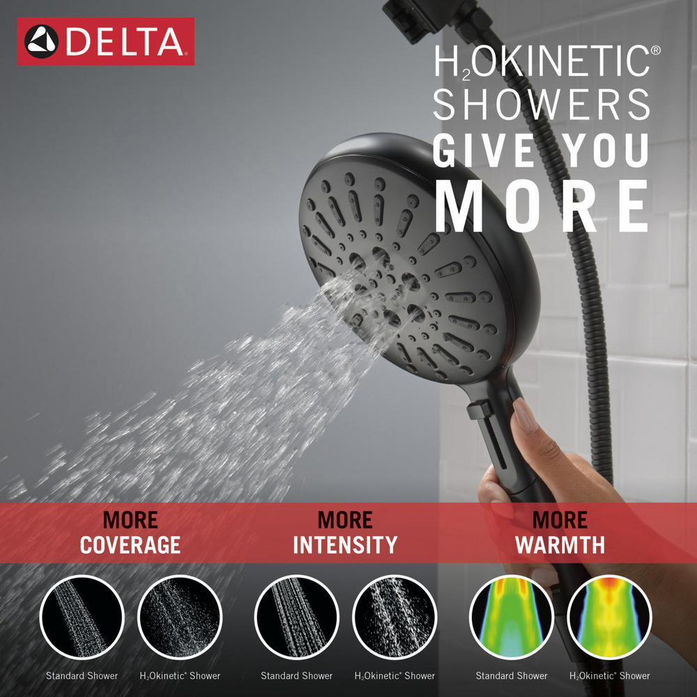 SureDock Magnetic Hand Showers bring reliable docking within reach. An integrated magnet on the back of the hand shower snaps your hand shower into place and holds it there, so it stays docked when not in use and doesn’t droop over time. Using advanced technology, H2Okinetic Showers sculpt water into a unique wave pattern, giving you 3X the coverage of a standard shower head, resulting in a shower that provides more coverage, more warmth and more intensity for a truly drenching shower experience. The pause setting gives you ample space for shaving, lathering and other shower tasks, then easily restarts the water with the temperature where you left off. You can install with confidence, knowing Delta products are backed by our Lifetime Limited Warranty.