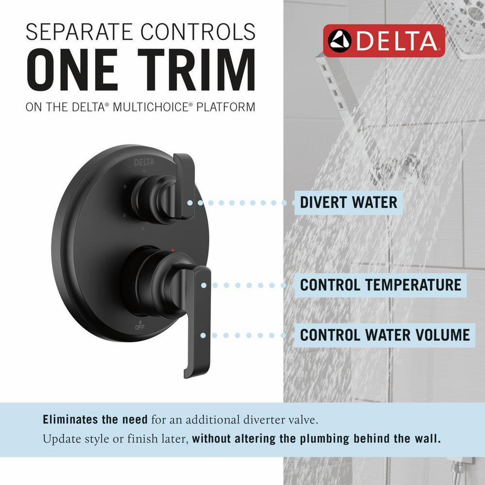 Familiar geometries and subtle curves in the Tetra Bath Collection combine to bring a sleek, architectural look and feel to the bath. Familiar geometries and subtle curves in the Tetra Bath Collection combine to bring a sleek, architectural look and feel to the bath. Delta showers with Monitor pressure-balance valves are engineered to make sure you don't experience a sudden and possibly unsafe change in water temperature as a result of running water elsewhere, such as using a dishwasher, flushing a toilet or running a washing machine. By integrating separate controls on one trim with the MultiChoice Integrated Shower Diverter, we've streamlined installation and your shower style. You can install with confidence, knowing Delta products are backed by our Lifetime Limited Warranty.
