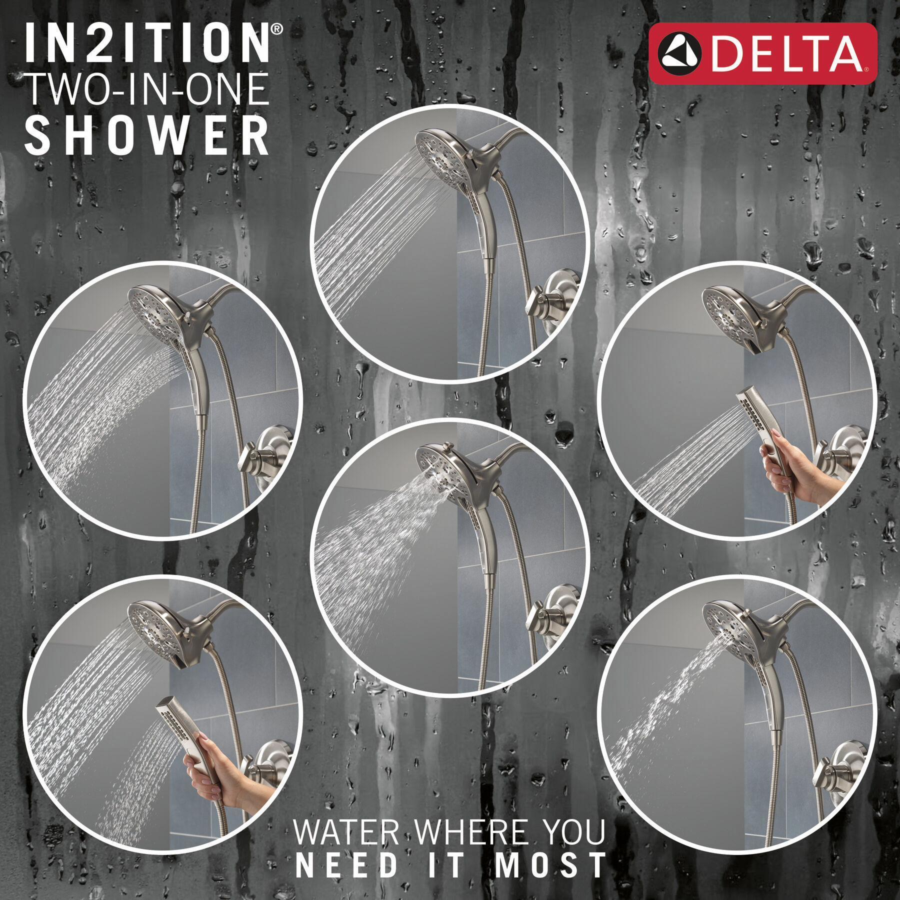 - The In2ition® Two-in-One Shower gets water where you need it most using the integrated shower head and hand shower separately or together